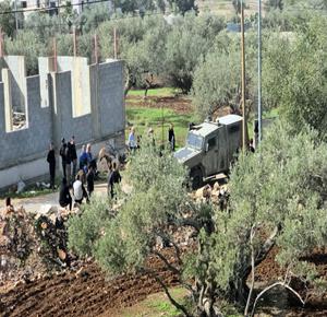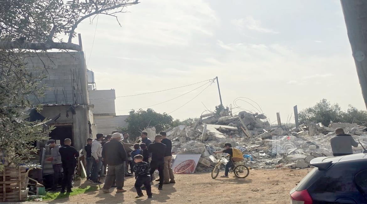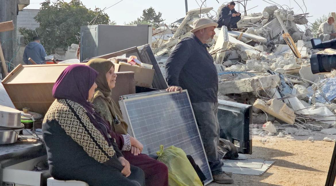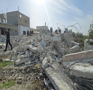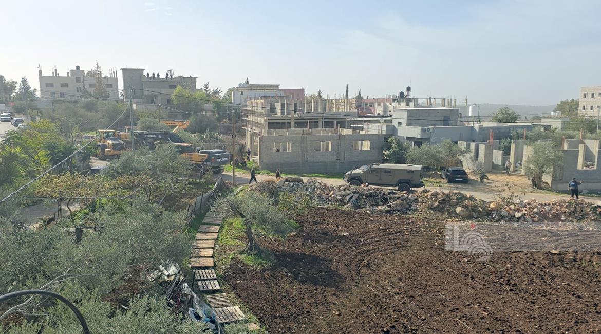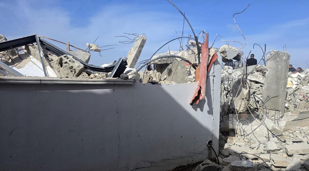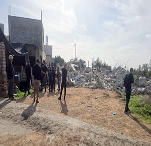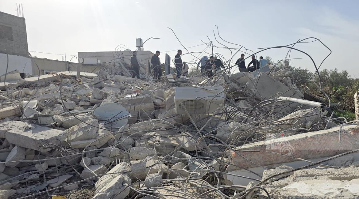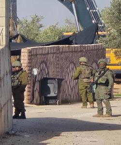 رام الله - الاحتلال يهدم منزلين وبركسا زراعيا للشقيقين نضال وأحمد محمود عبد الخالق في قرية بدرس