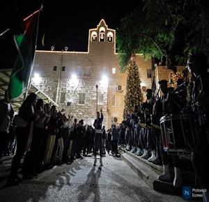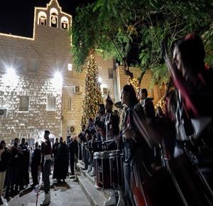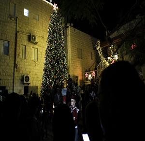 جنين - إضاءة شجرة الميلاد في كنيسة دير اللاتين في مدينة جنين للمرة الأولى منذ عامين