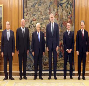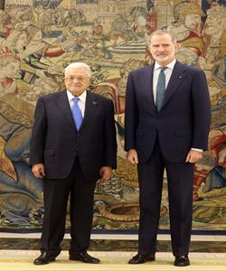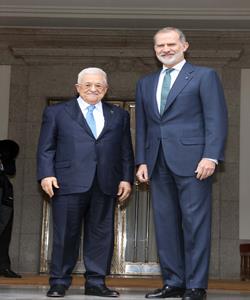 مدريد - الرئيس محمود عباس ،خلال لقائه ملك إسبانيا فيليبي السادس، في العاصمة الإسبانية مدريد