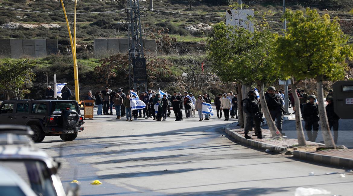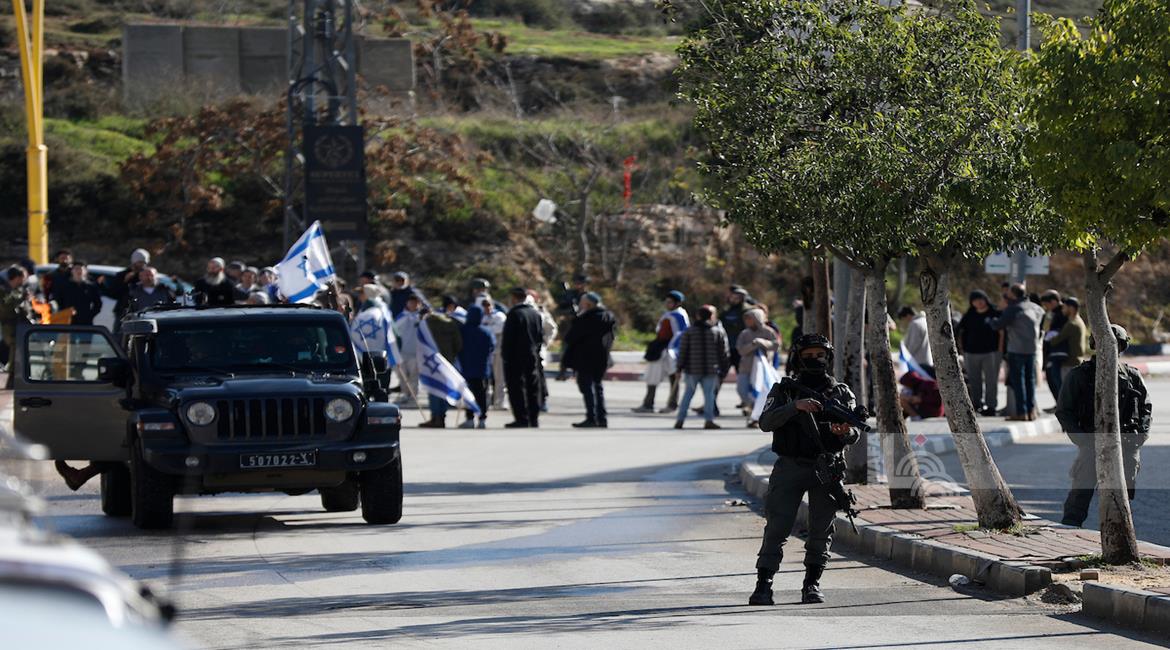 الخليل - مستعمرون بحماية قوات الاحتلال يقتحمون منطقة "قيزون" في الخليل