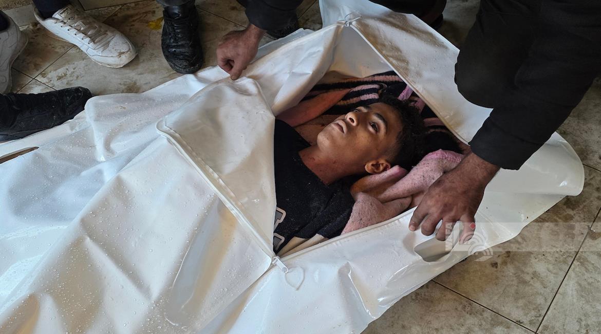 غزة - وداع وتشييع شهيدين داخل مستشفى ناصر في خان يونس، ارتقيا بنيران الاحتلال في منطقة المواصي برفح جنوب قطاع غزة
