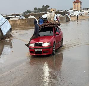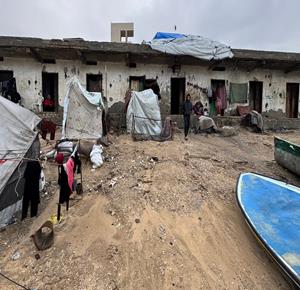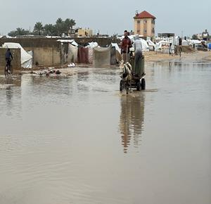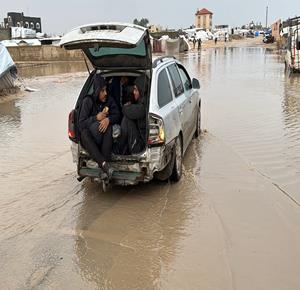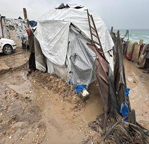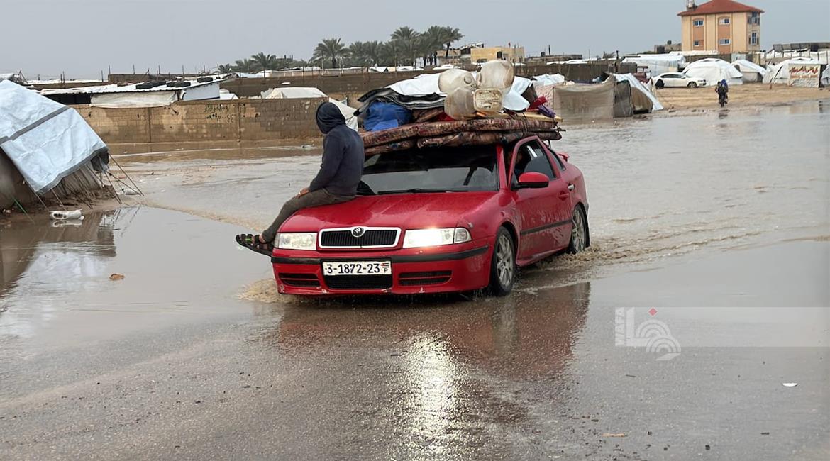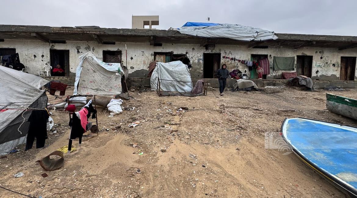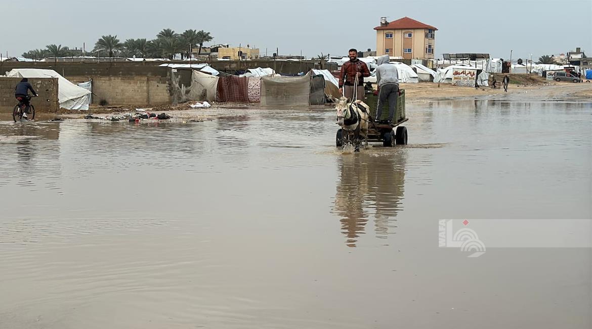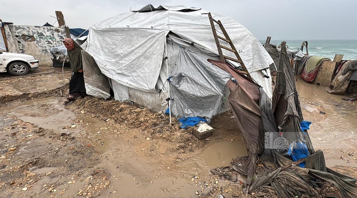 غزة - نازحون يعيشون ظروف قاسية بسبب الفياضانات في دير البلح