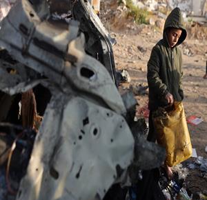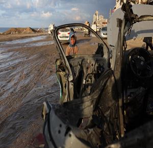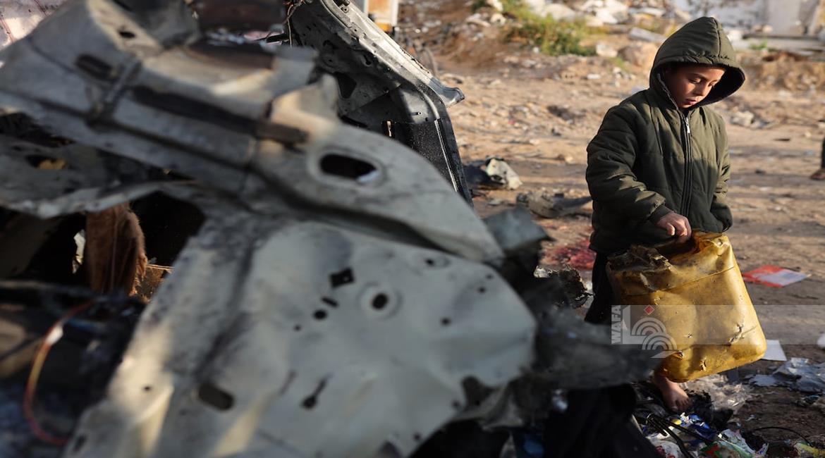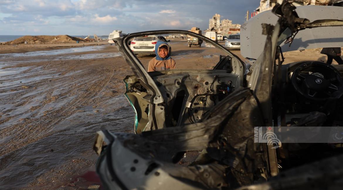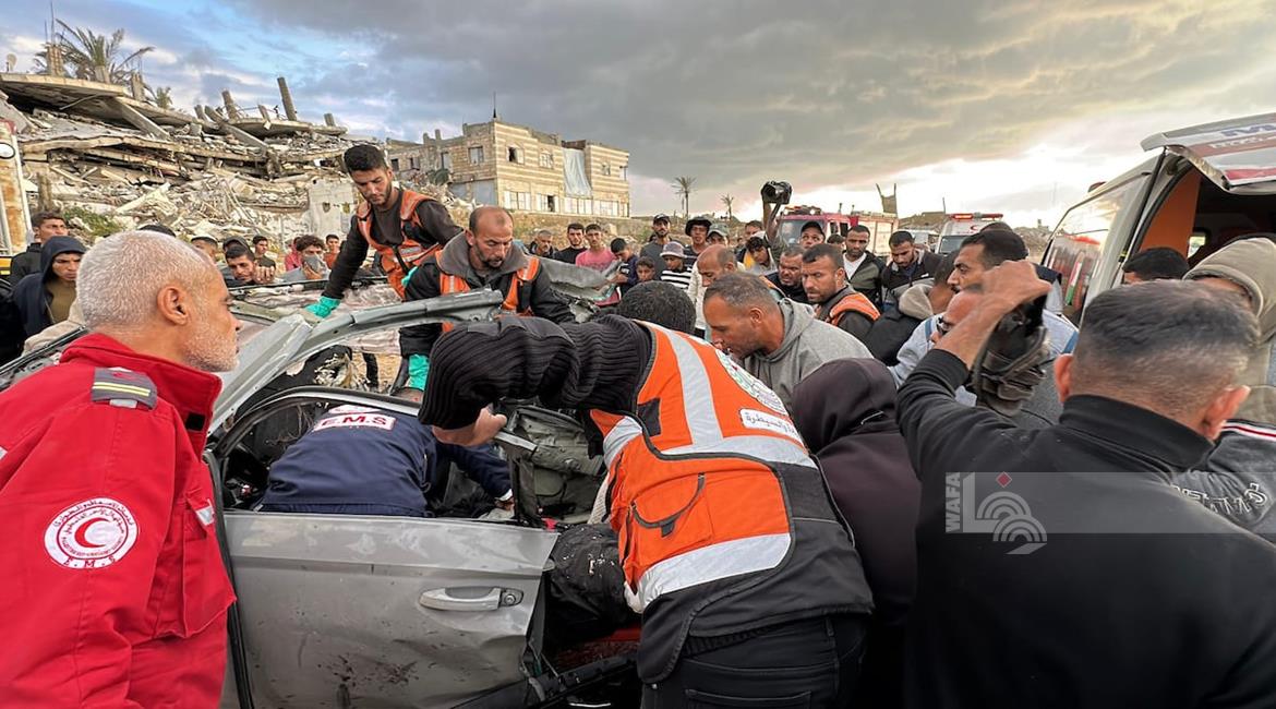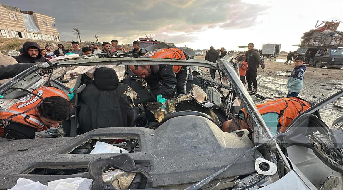 غزة - مواطنون يتفقدون مركبة تعرضت لقصف إسرائيلي في مدينة غزة أسفر عن ارتقاء شهداء وجرحى