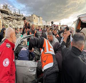 مواطنون ينقلون شهداء ومصابين بقصف إسرائيلي استهدف مركبة غرب مدينة غزة إلى مستشفى الشفاء