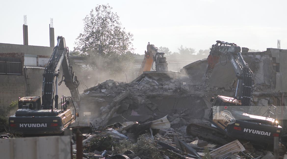مواطنون يجرون عمليات بحث وانقاذ في مبنى سكني انهار في مخيم الشاطئ عقب هطول الأمطار