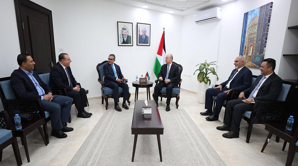 رام الله - رئيس الوزراء محمد مصطفى خلال استقباله مدير عام الشركة الأردنية الفلسطينية للتسويق الزراعي قيس القطامين