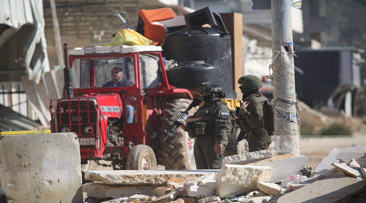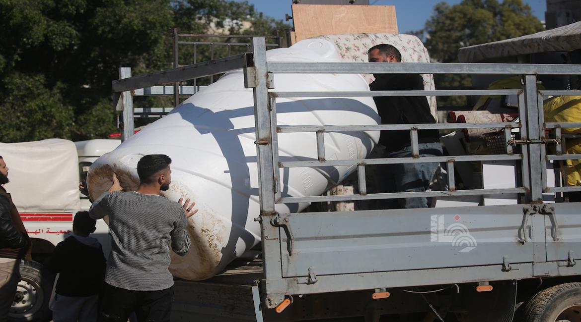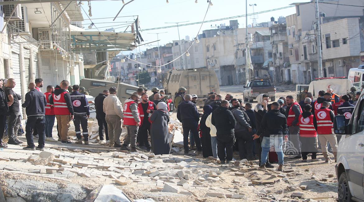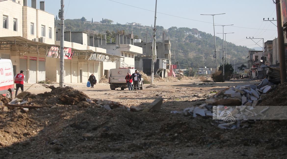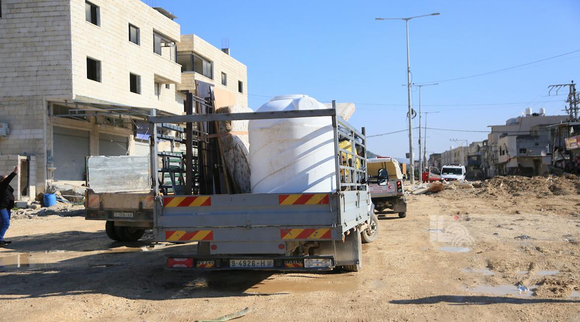طولكرم - مواطنون يحملون أمتعتهم بعد إجبارهم على مغادرة منازلهم من قبل قوات الاحتلال في مخيم نور شمس شرق طولكرم
