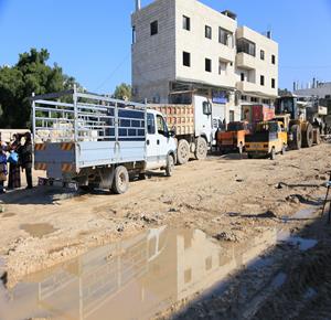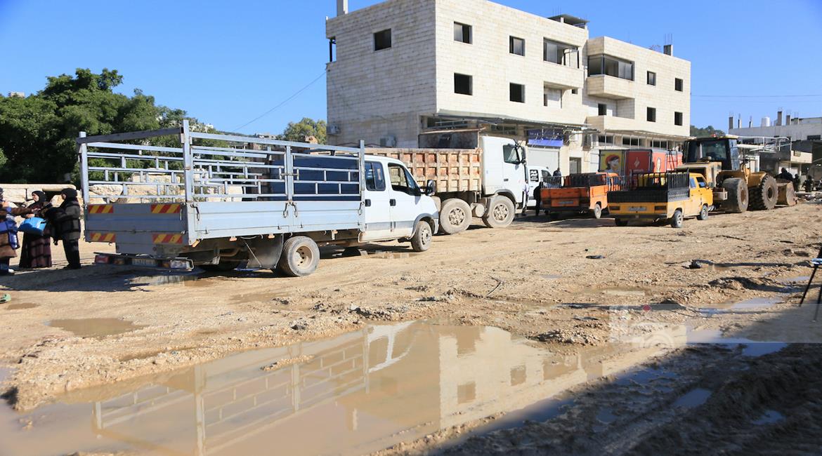 مواطنون يجرون عمليات بحث وانقاذ في مبنى سكني انهار في مخيم الشاطئ عقب هطول الأمطار