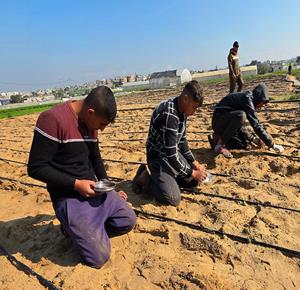 غزة - مزارعون يتحدون الظروف القاسية ويكافحون لإعادة زراعة أراضيهم قرب "الخط الأصفر" جنوب خان يونس