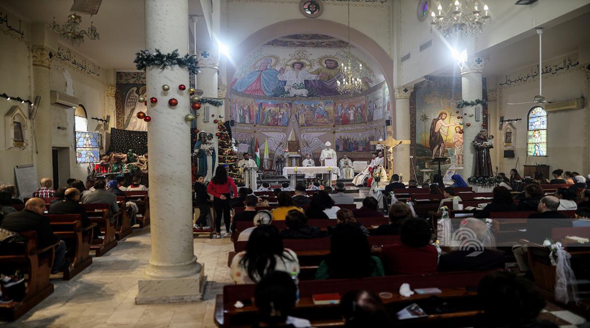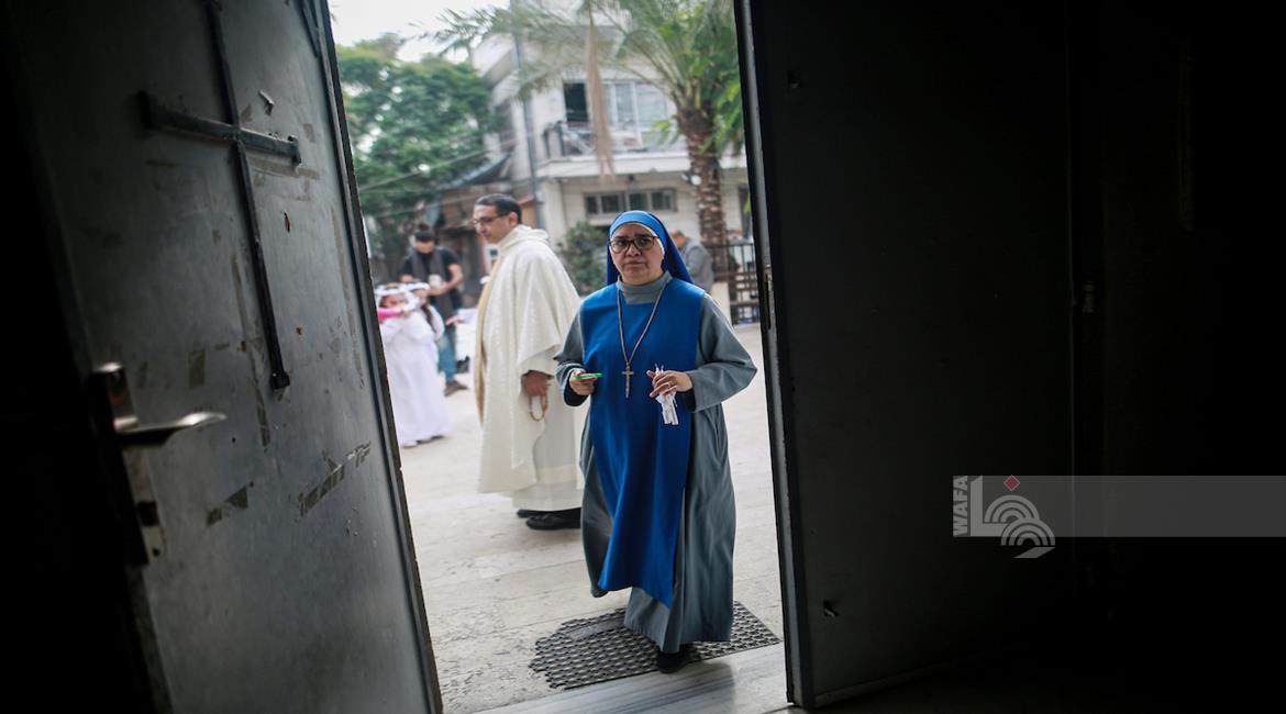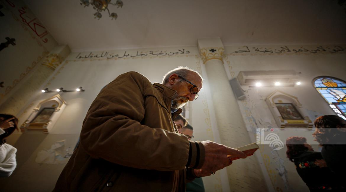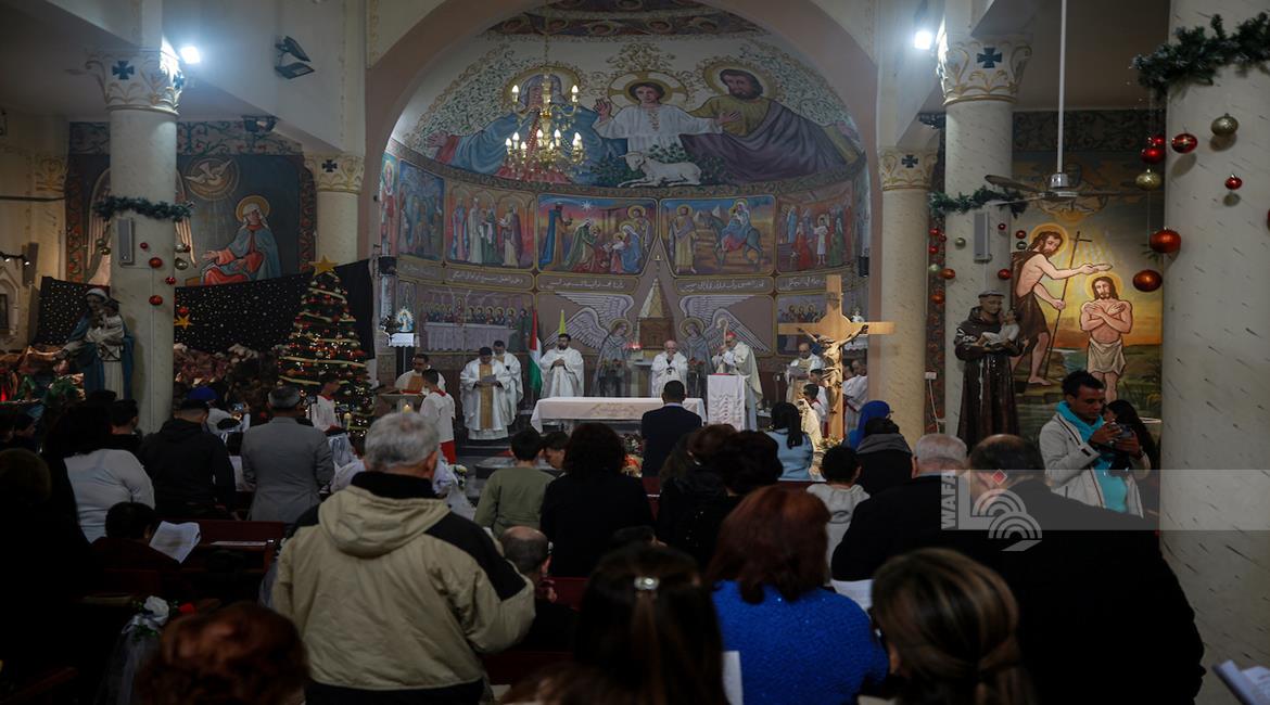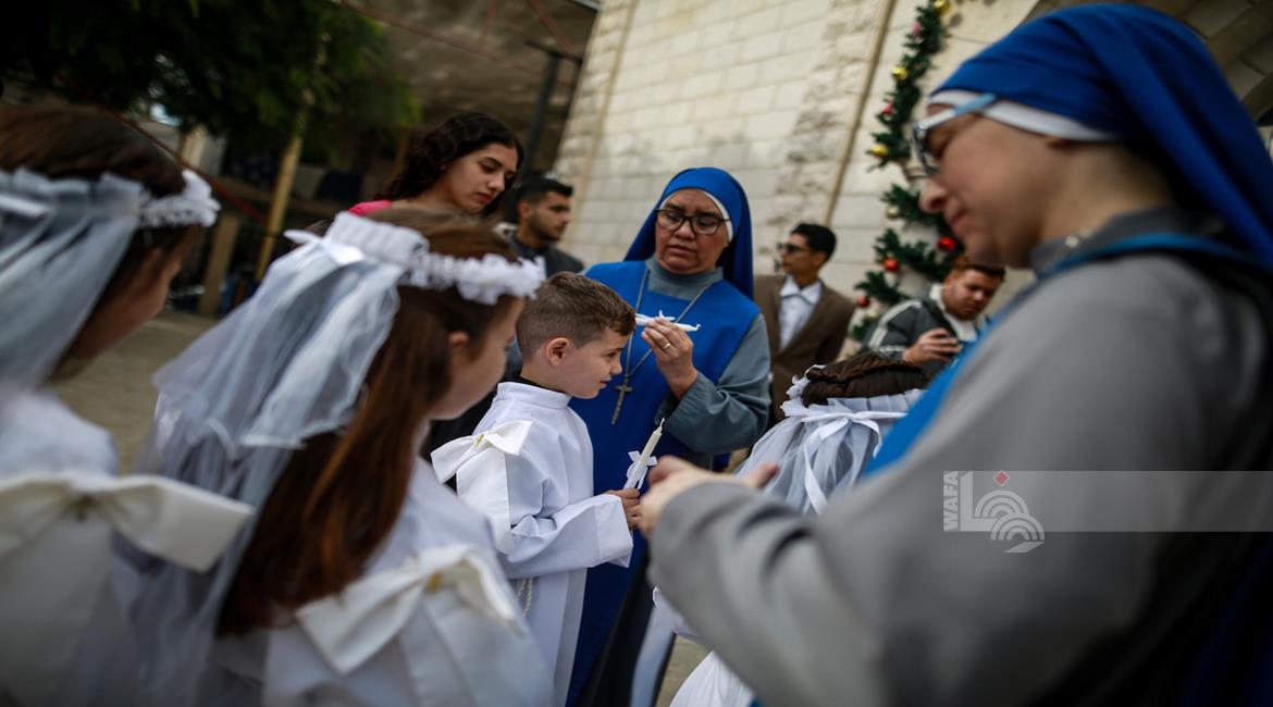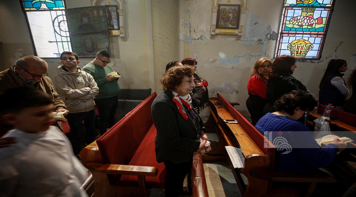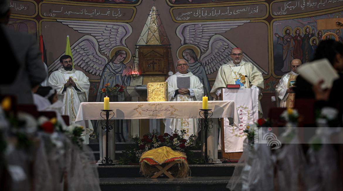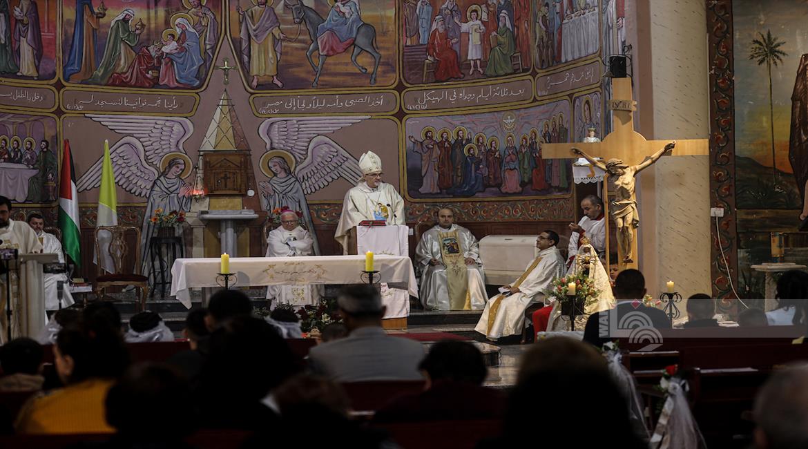 غزة - مسيحيون يحضرون قداس الأحد الذي ترأسه بطريرك القدس للاتين الكاردينال بييرباتيستا بيتسابالا قبيل عيد الميلاد في الكنيسة اللاتينية بمدينة غزة