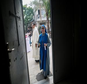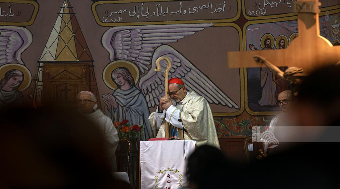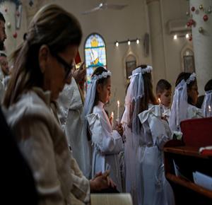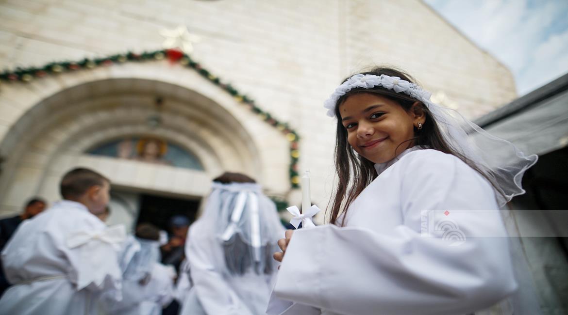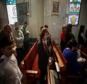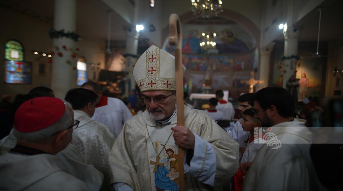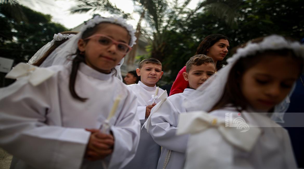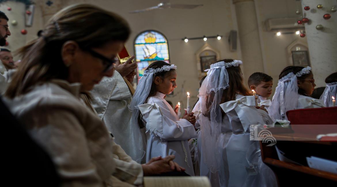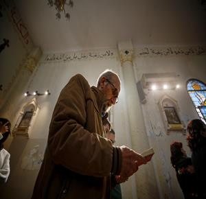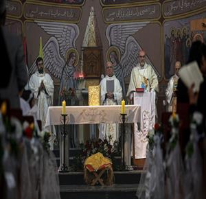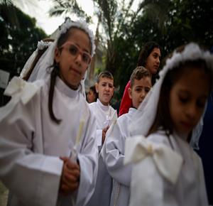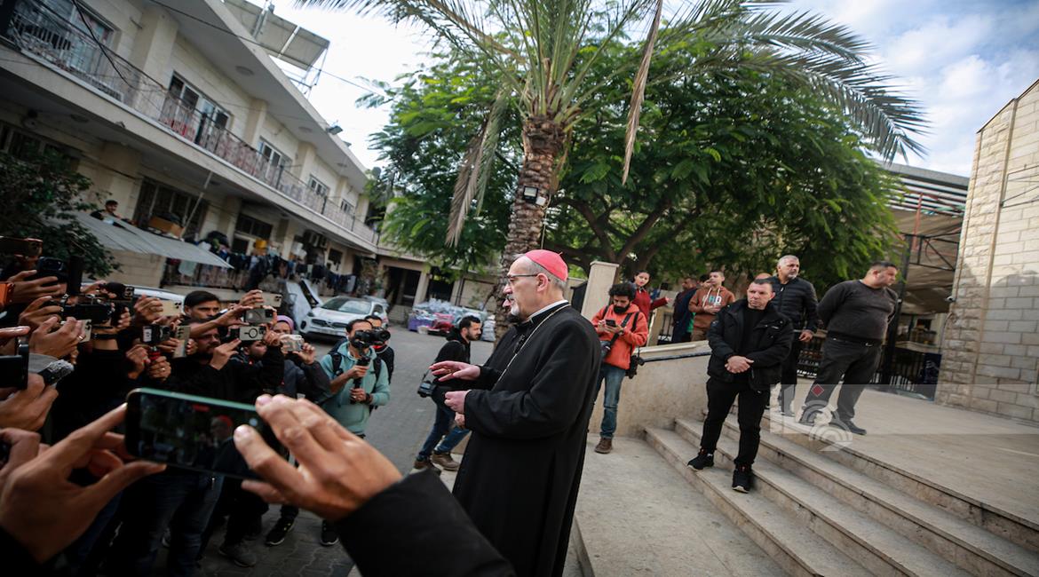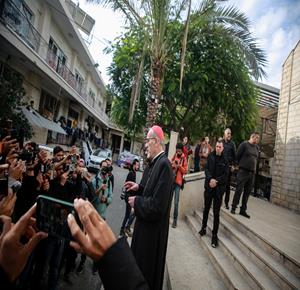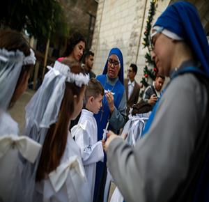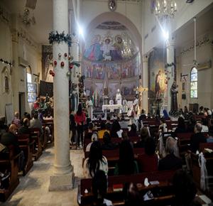 غزة - مسيحيون يحضرون قداس الأحد الذي ترأسه بطريرك القدس للاتين الكاردينال بييرباتيستا بيتسابالا قبيل عيد الميلاد في الكنيسة اللاتينية بمدينة غزة