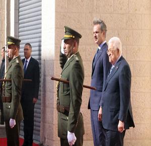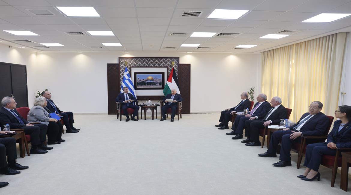رام الله - الرئيس محمود عباس يستقبل رئيس وزراء اليونان كيرياكوس ميتسوتاكيس