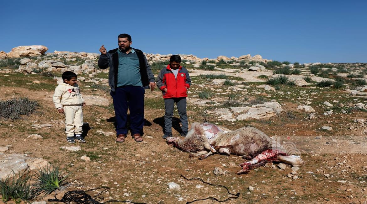 الخليل - آثار اعتداء المستعمرين على ممتلكات المواطنين والمواشي في بلدة السموع