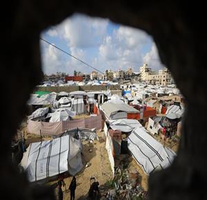 غزة - النازحون في الخيام يواصلون حياتهم اليومية في ظروف معيشية صعبة وأجواء الشتاء الباردة في مدينة غزة