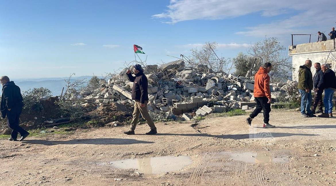 نابلس - جرافات الإحتلال الإسرائيلي تهدم منزل الشهيد مالك سالم في قرية بزاريا