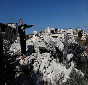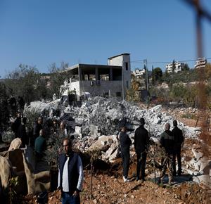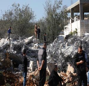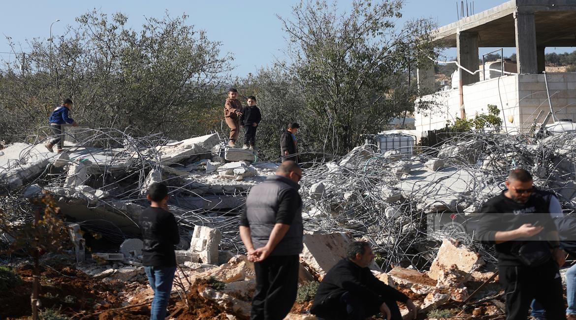 جرافات الإحتلال الإسرائيلي تهدم منزل الشهيد مالك سالم في قرية بزاريا