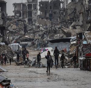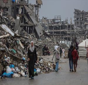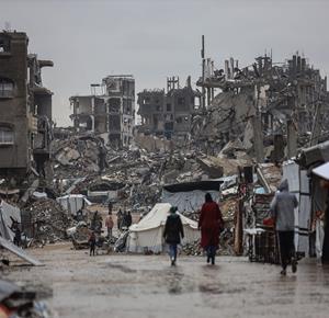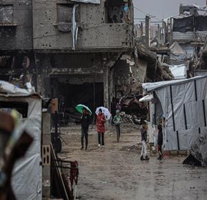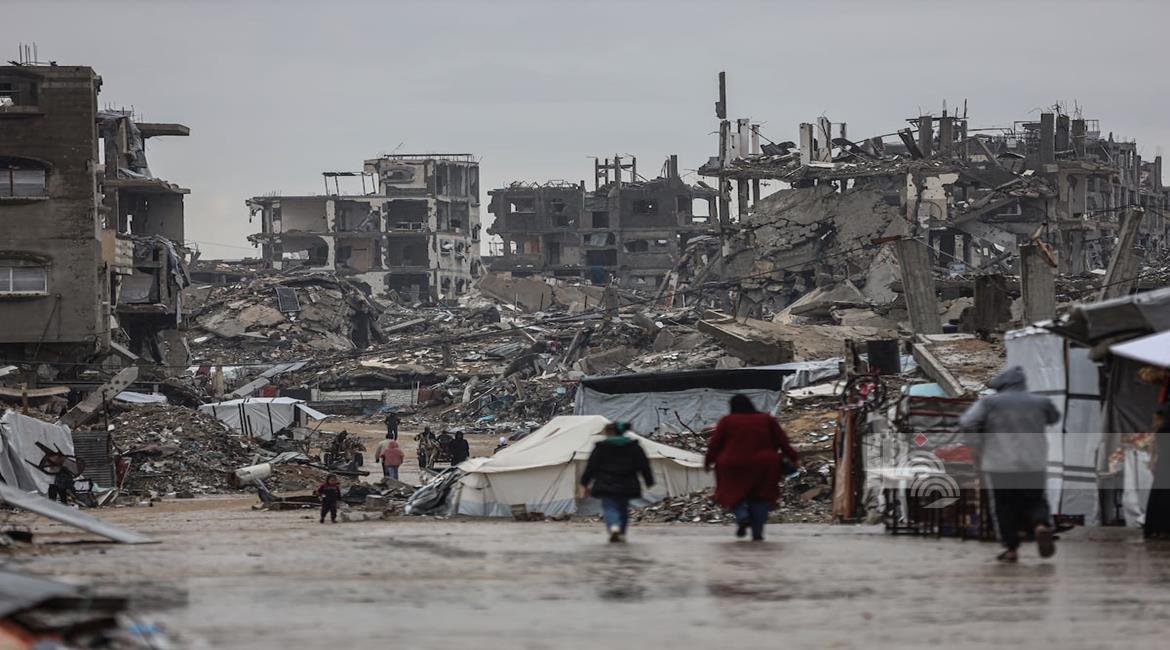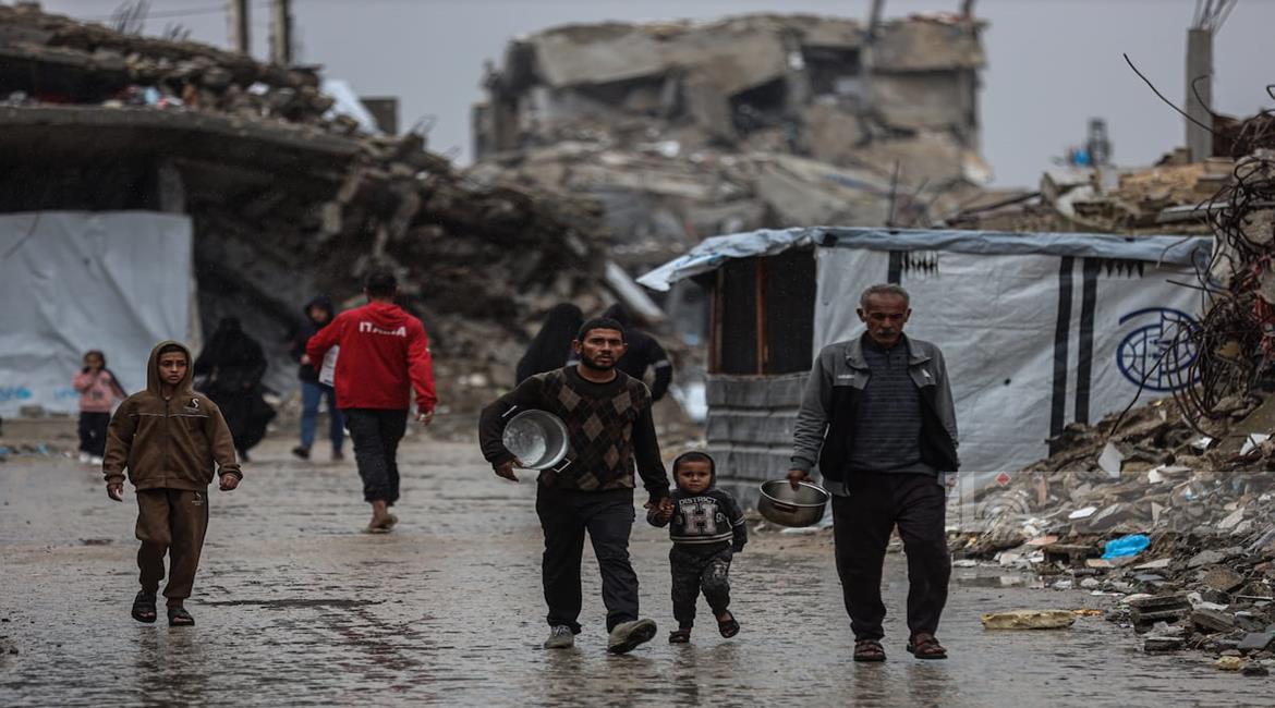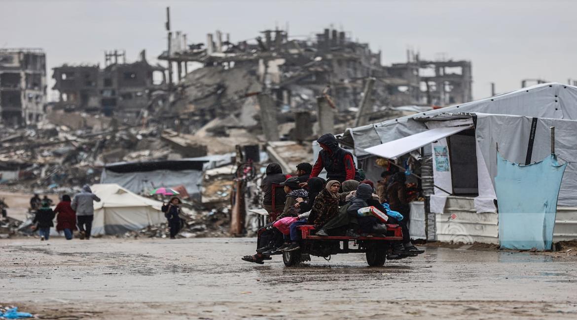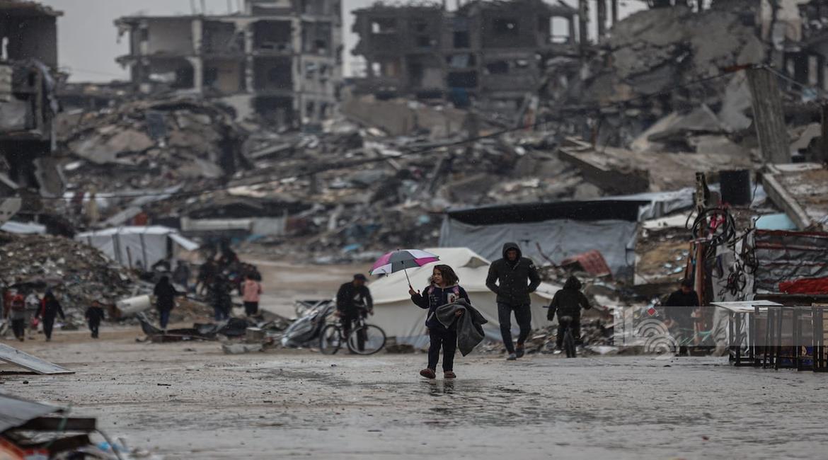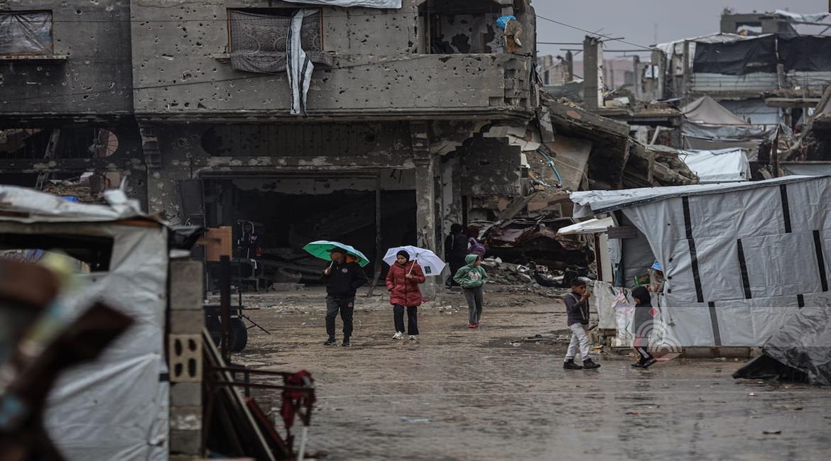 غزة - ظروف قاسية يواجهها النازحون في مخيم جباليا المدمر شمال قطاع غزة مع بدء تأثير المنخفض الجوي