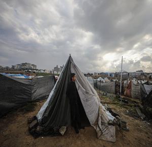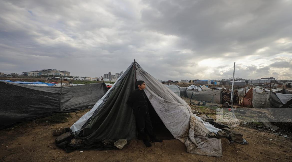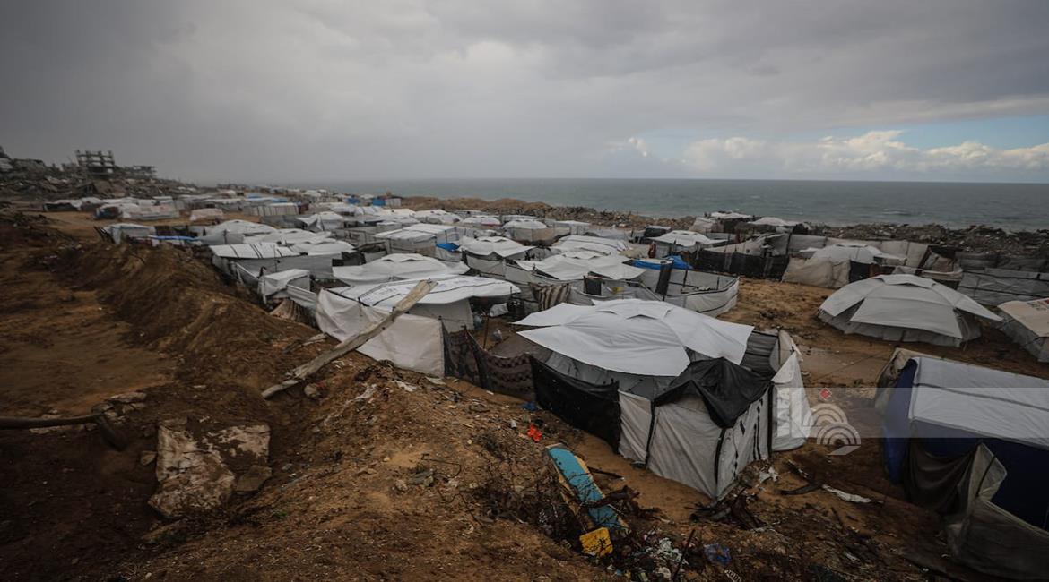 غزة - نازحون في خيام مؤقتة يواجهون ظروفا قاسية مع دخول المنخفض الجوي في مخيم الشاطئ غرب مدينة غزة