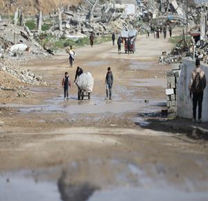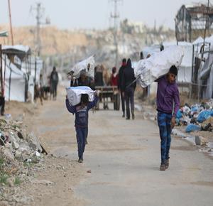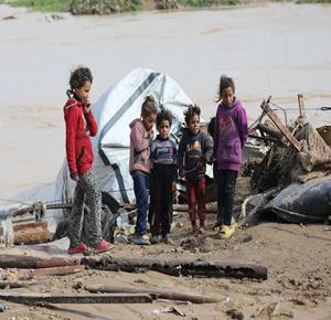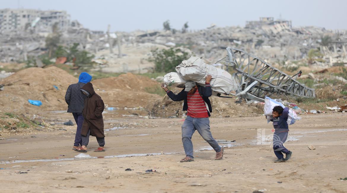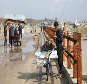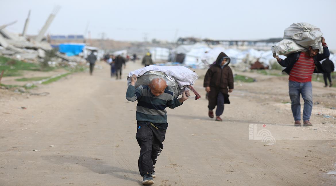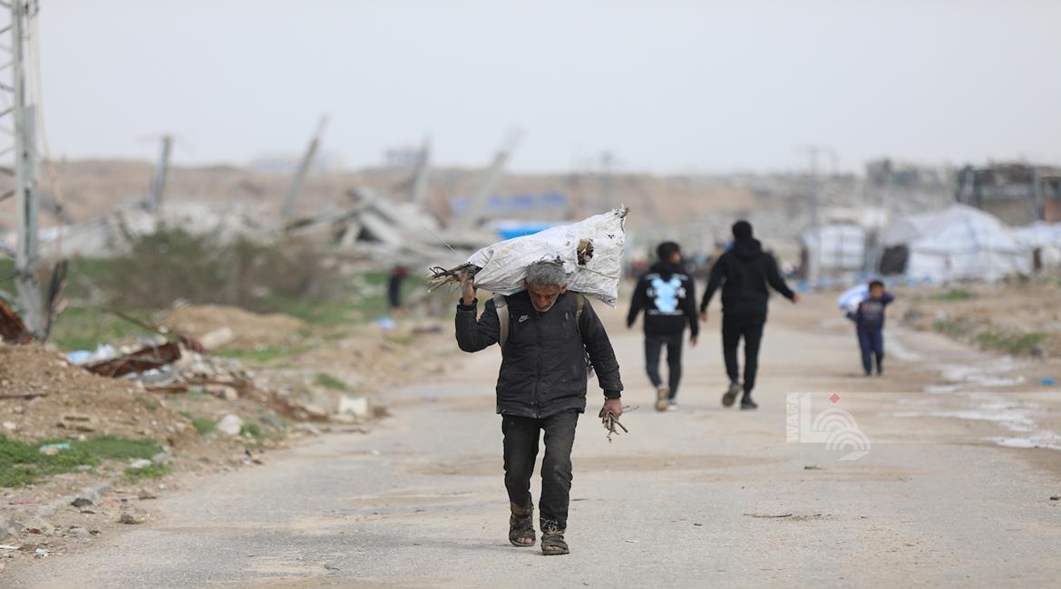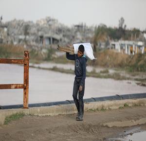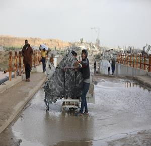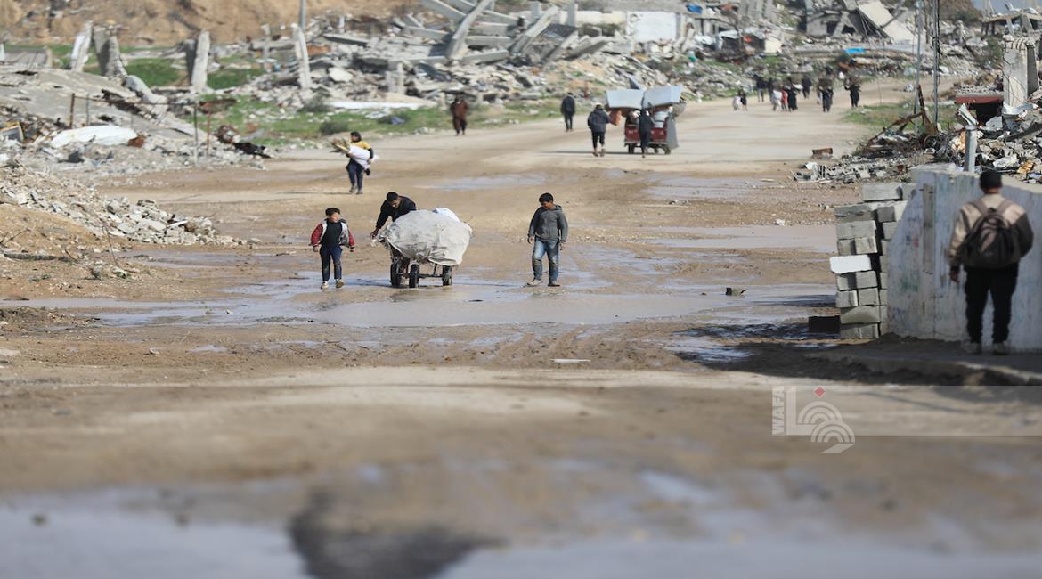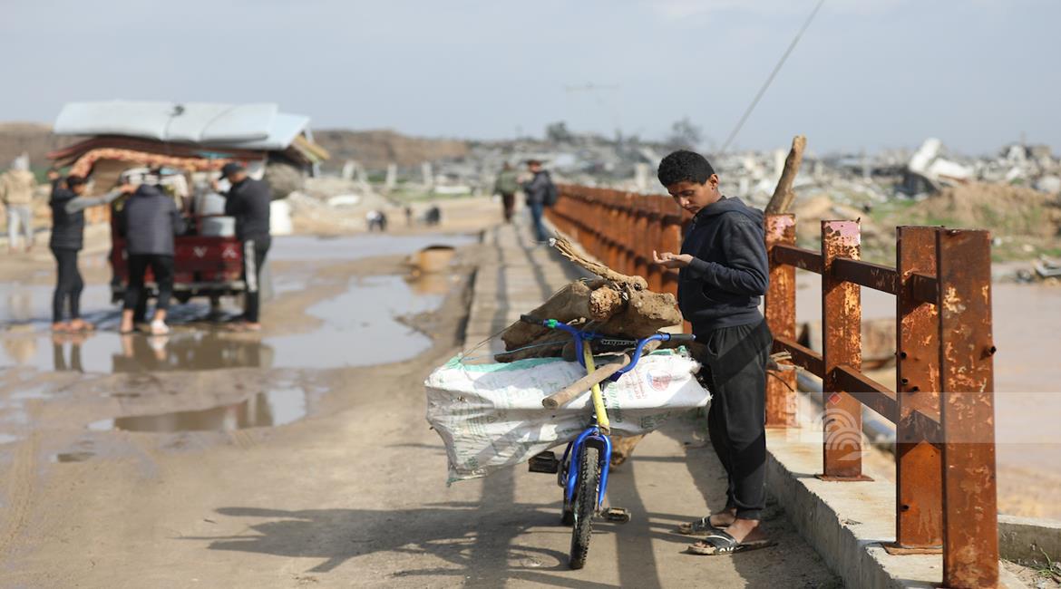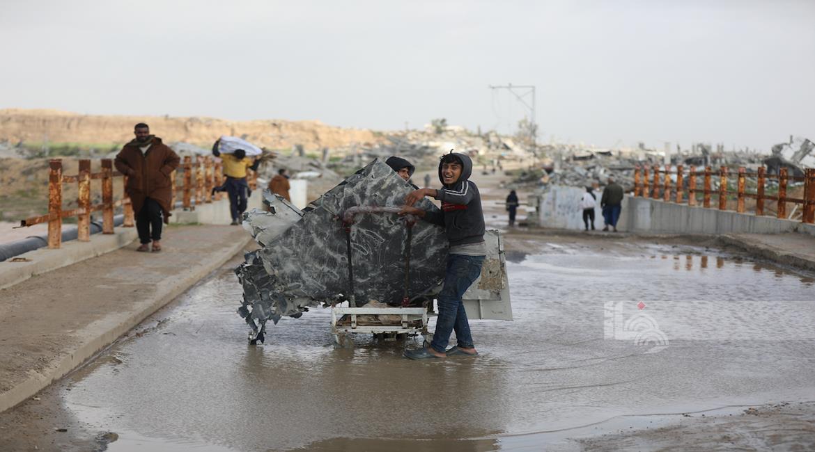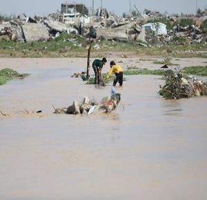 غزة - فيضان المياه في وادي غزة بفعل الاحتلال يزيد من معاناة العائلات النازحة التي كانت تقيم في خيامها قرب منطقة الوادي