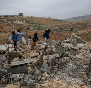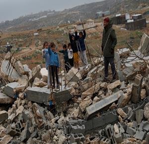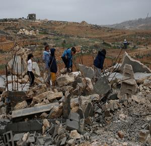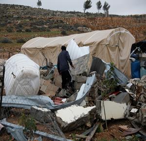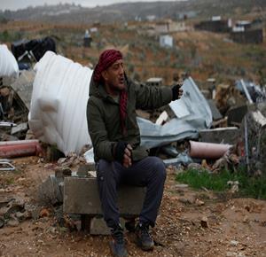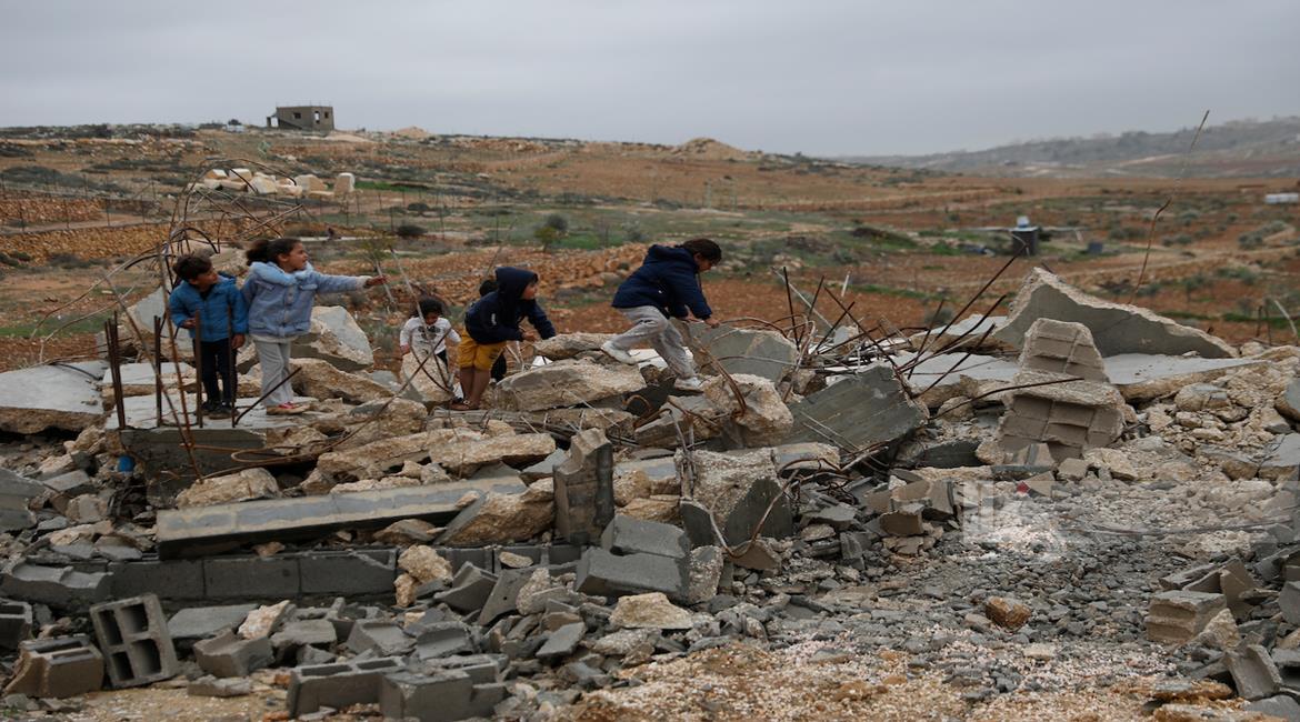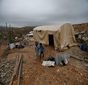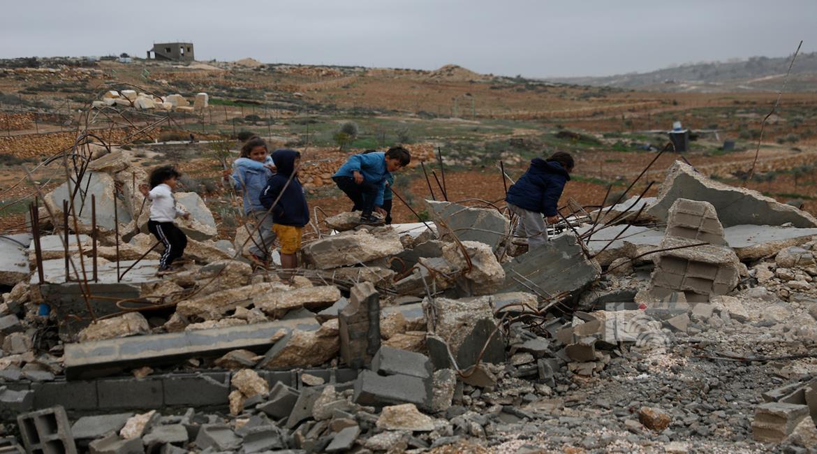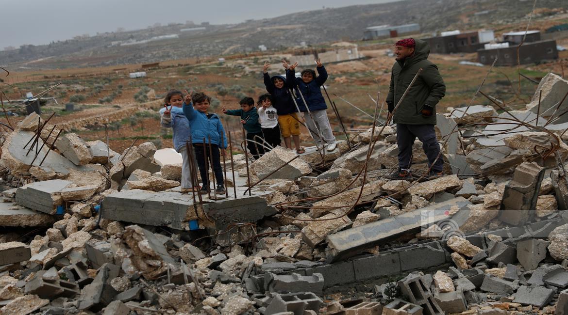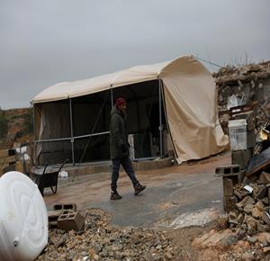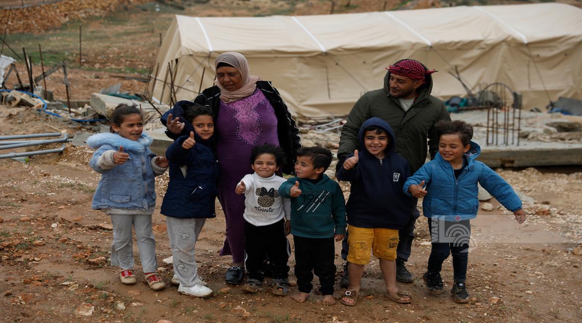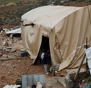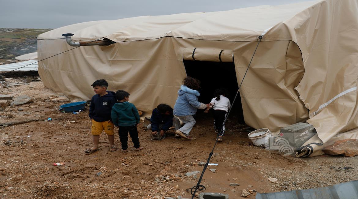 الخليل - مياه الأمطار تغمر خيمة عائلة حرب التي أقامتها على أنقاض منزلهم الذي هدمه جيش الاحتلال في 9 ديسمبر، في منطقة خلات الفرا، غرب يطا، جنوب الخليل.