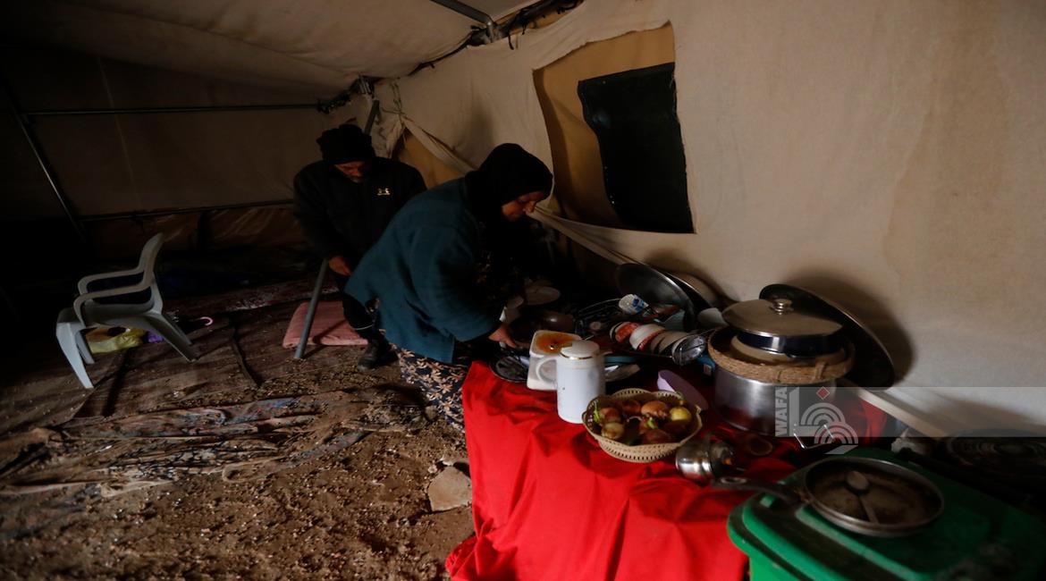 فيضان المياه في وادي غزة بفعل الاحتلال يزيد من معاناة العائلات النازحة التي كانت تقيم في خيامها قرب منطقة الوادي