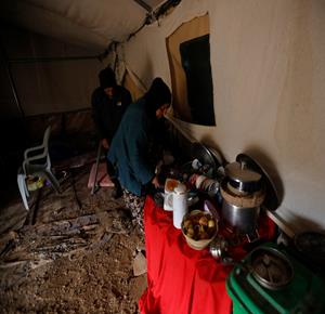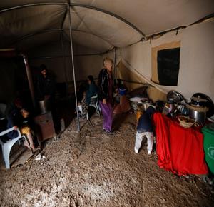 خيام النازحين تعجز عن توفير أي حماية من برد الشتاء القارس والأمطار الغزيرة في مدينة غزة.