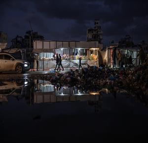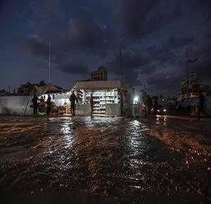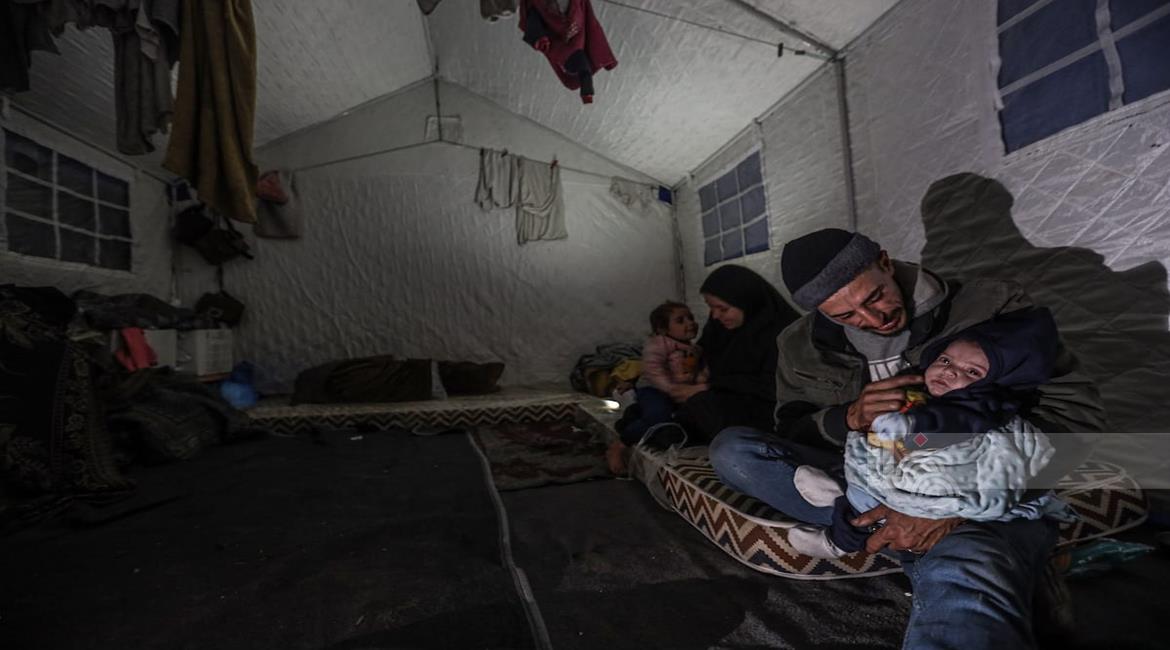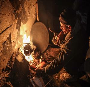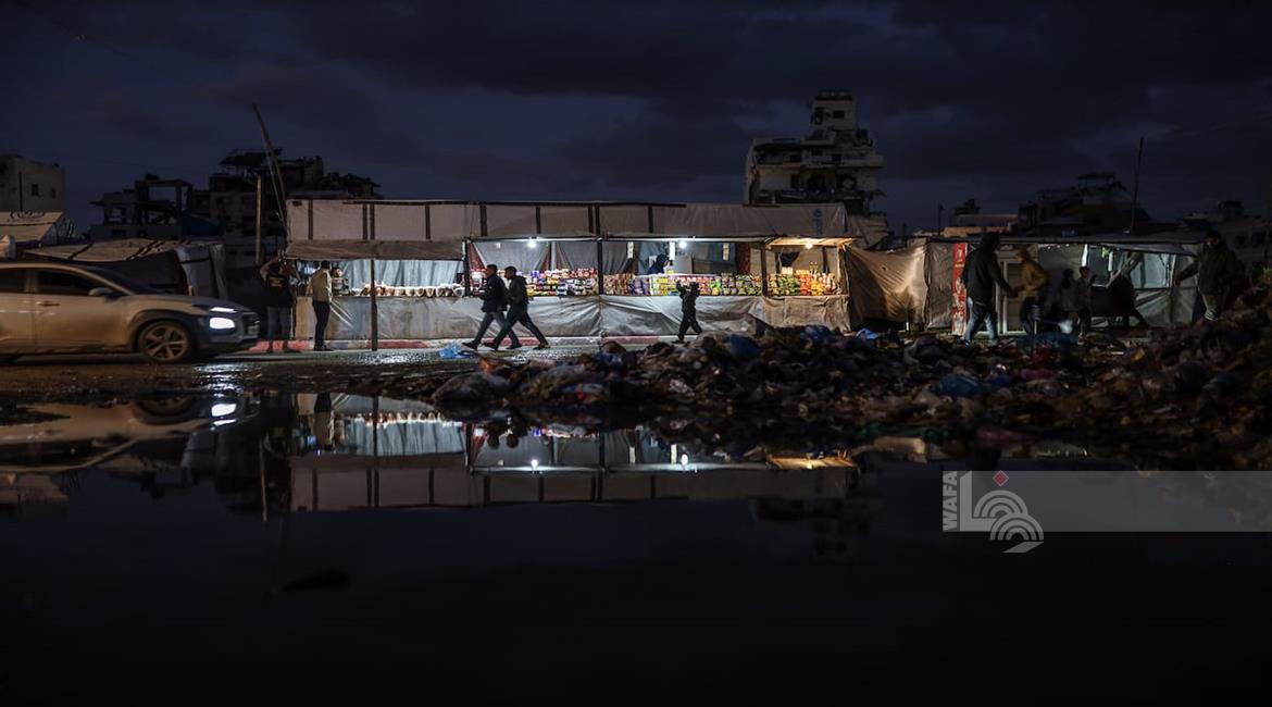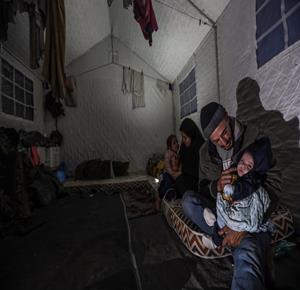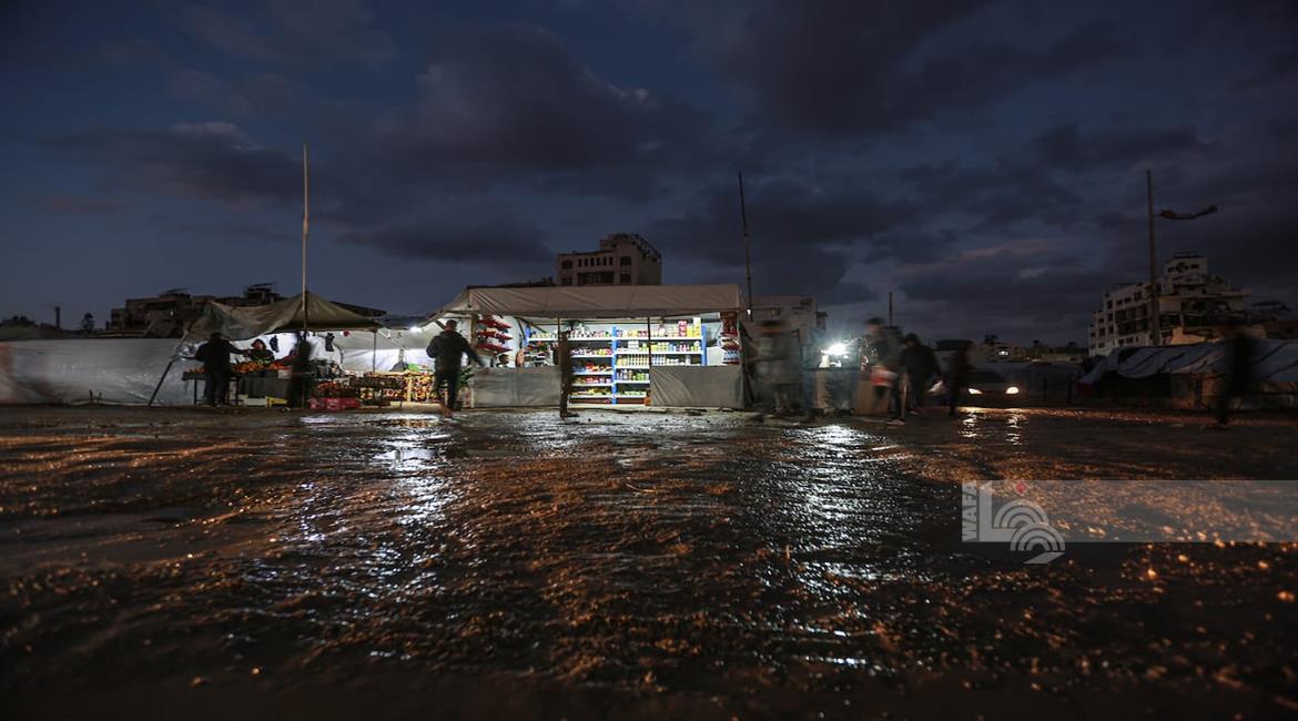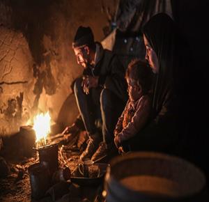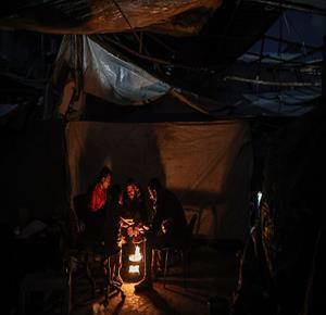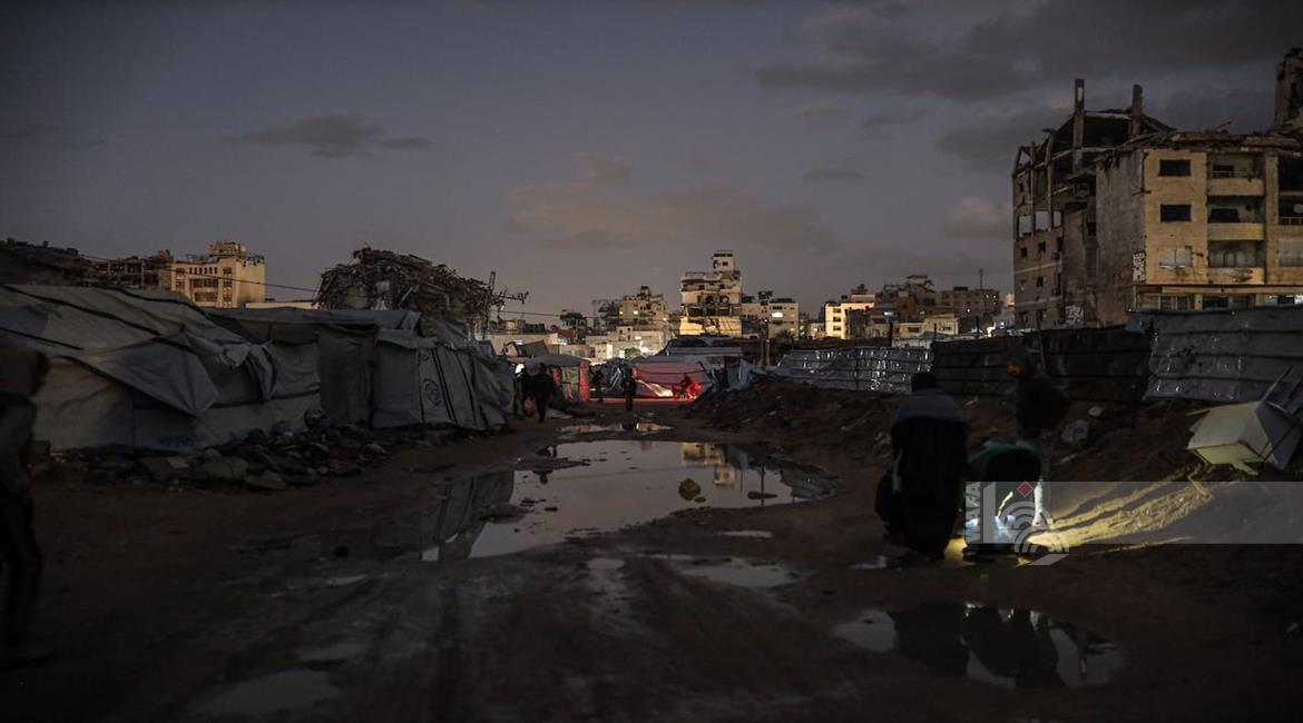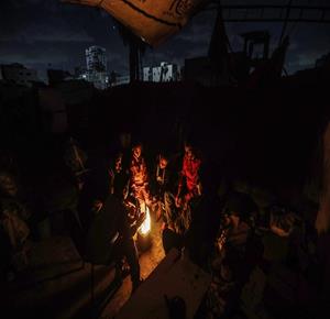 غزة - عائلات نازحة تتجمع حول النار للتدفئة في مدينة غزة في ظل الأجواء الباردة