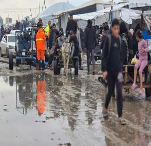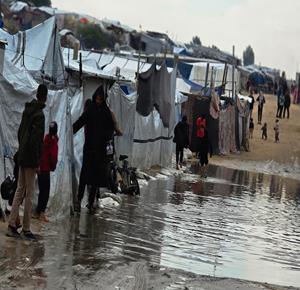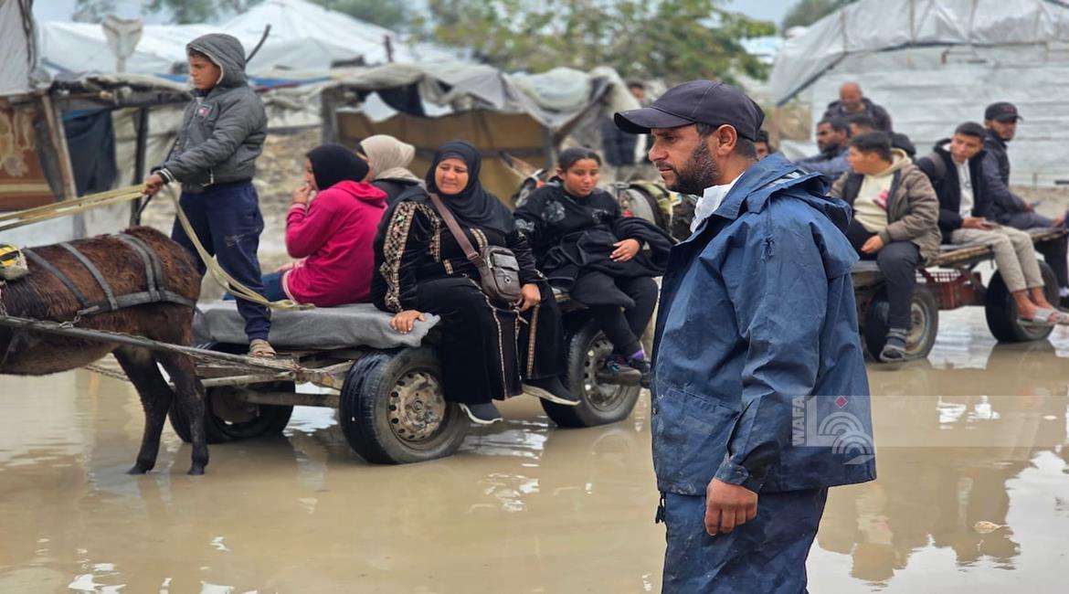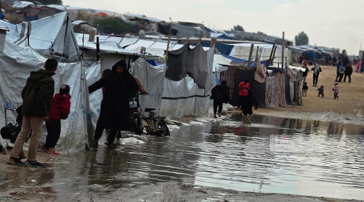 الأمطار الغزيرة تفاقم من معاناة النازحين في دير البلح وسط قطاع غزة
