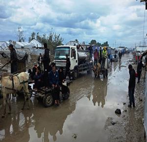 غزة - الامطار الغزيرة تفاقم معاناة النازحين في خان يونس