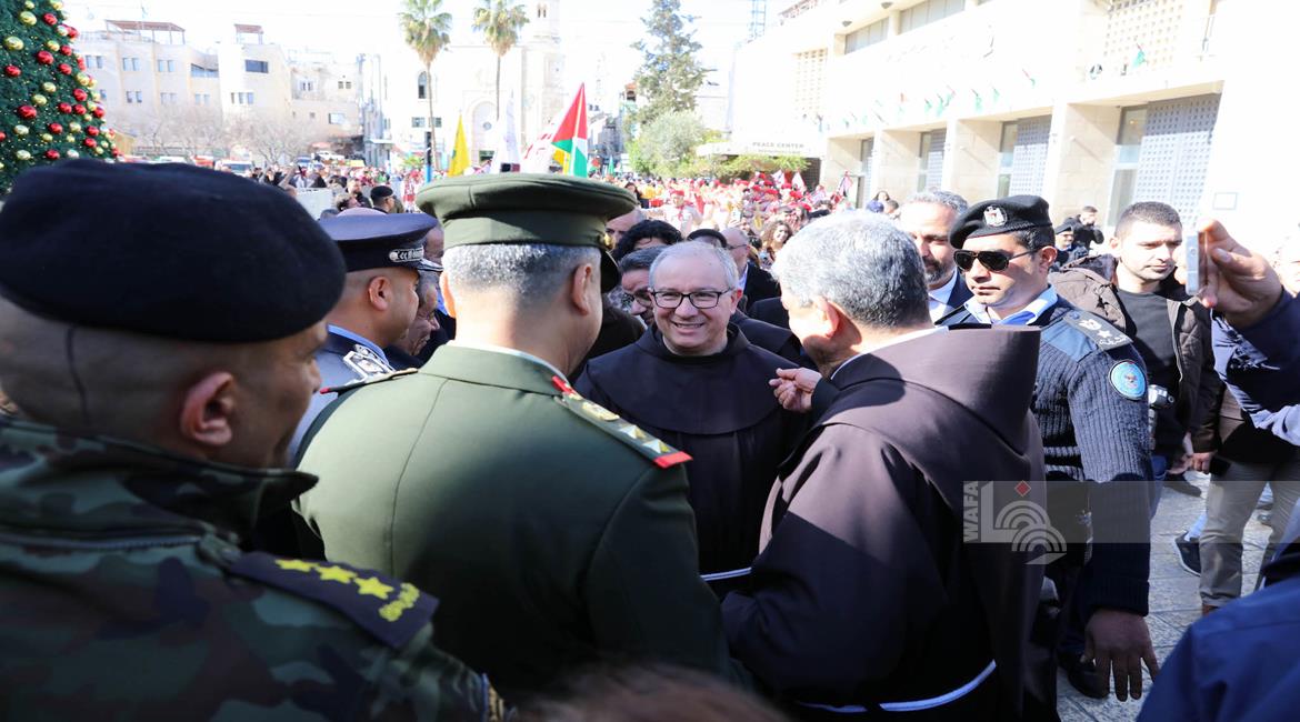 بيت لحم - وصول موكب حارس الأراضي المقدسة الأب فراشيسكو يلبو الى ساحة المهد ببيت لحم قادما من مدينة القدس، إيذانا للاحتفال بعيد الغطاس حسب التقويم الغربي