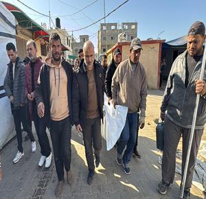 وداع وتشييع جثمان الشهيد عبد الرحمن الكاهن، 32 عاماً، في مستشفى ناصر بخان يونس