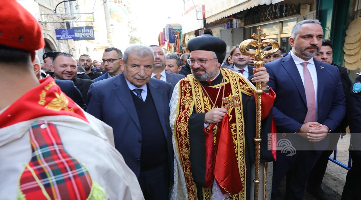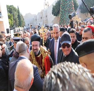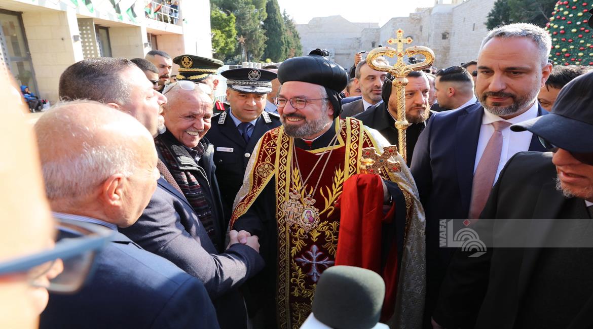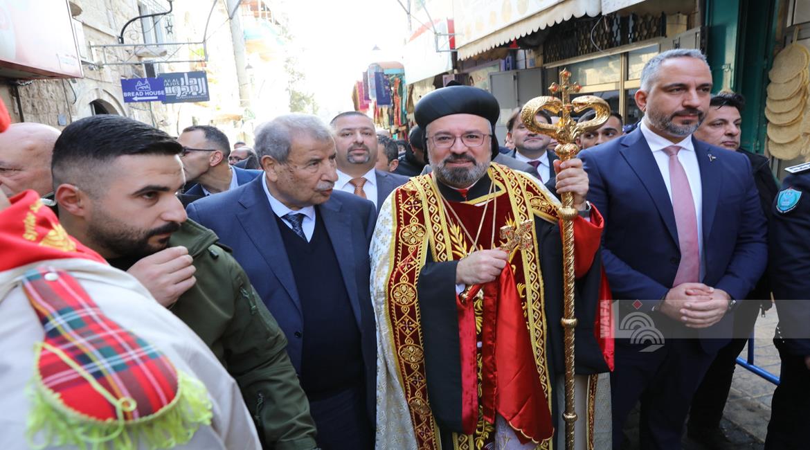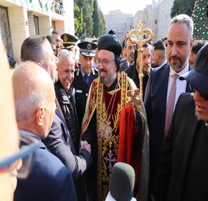 بيت لحم - وصول موكب النائب البطريركي للسريان الارثوذكس في القدس والأردن وسائر الديار المقدسة المطران مار انتيموس جاك يعقوب، إلى مدينة بيت لحم، للمشاركة في قداس منتصف الليل، لمناسبة عيد الميلاد المجيد حسب التقويم الشرقي