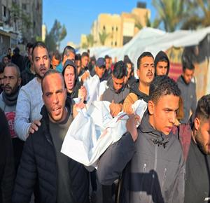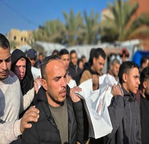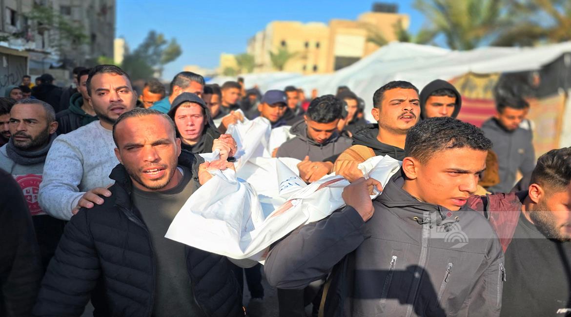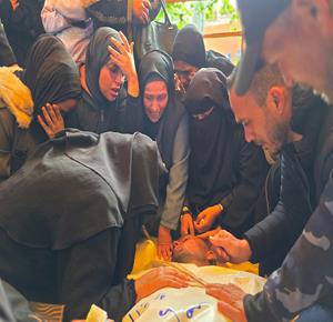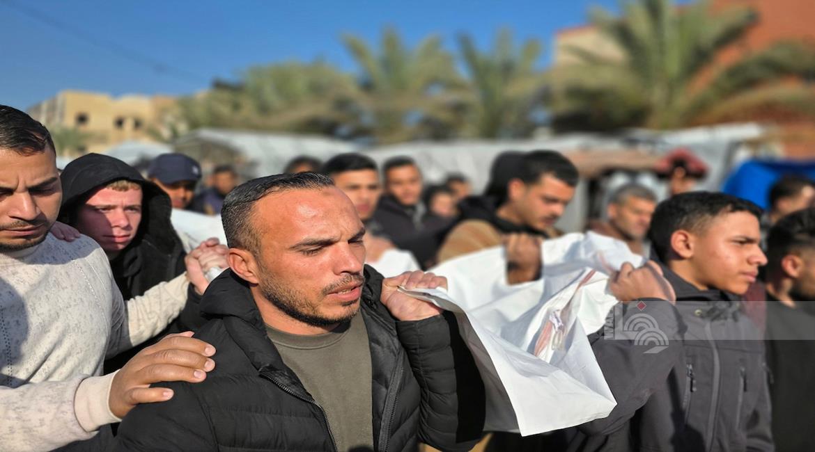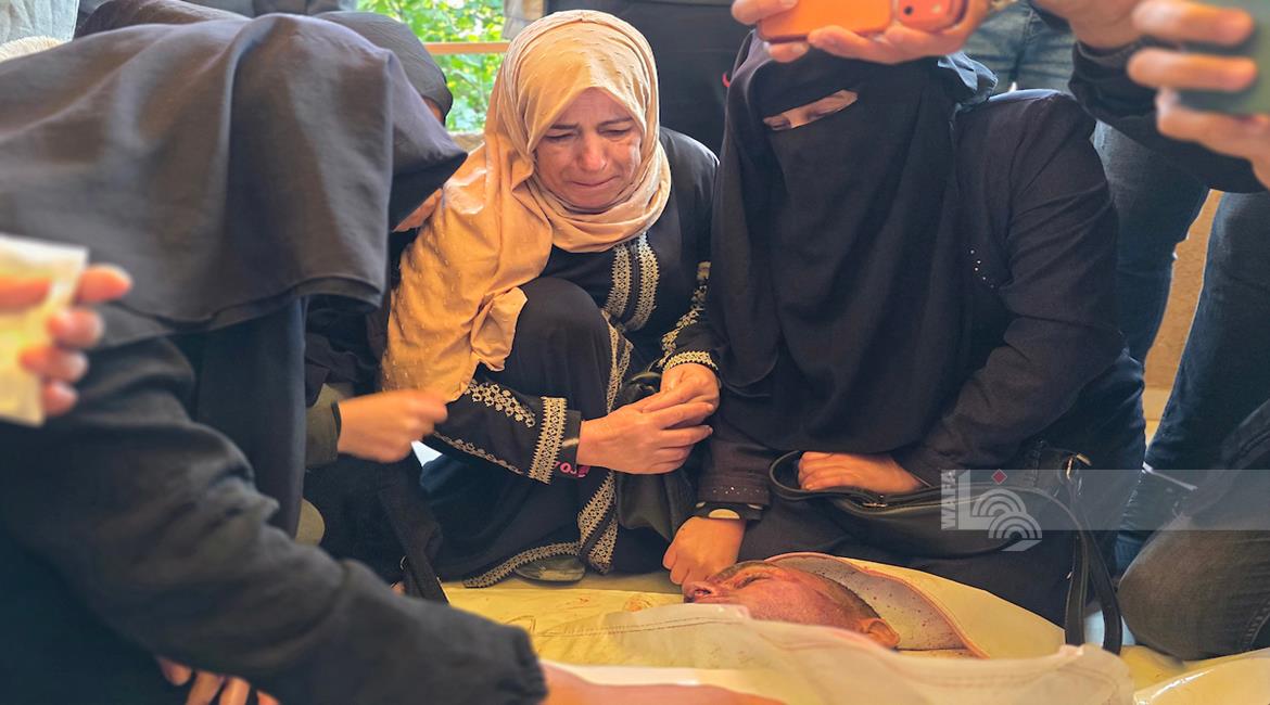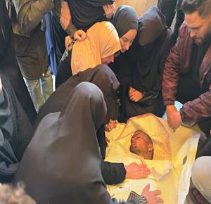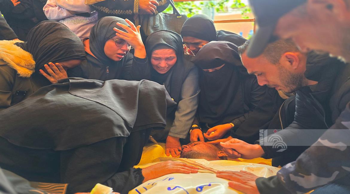 غزة - وداع وتشييع الشهيدين أحمد القدرة والطفلة دانا معروف اللذين ارتقيا بقصف إسرائيلي استهدف خيمة نازحين في منطقة المواصي غرب خان يونس