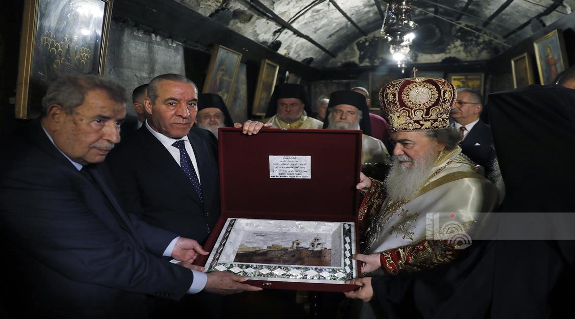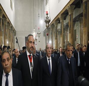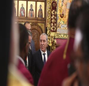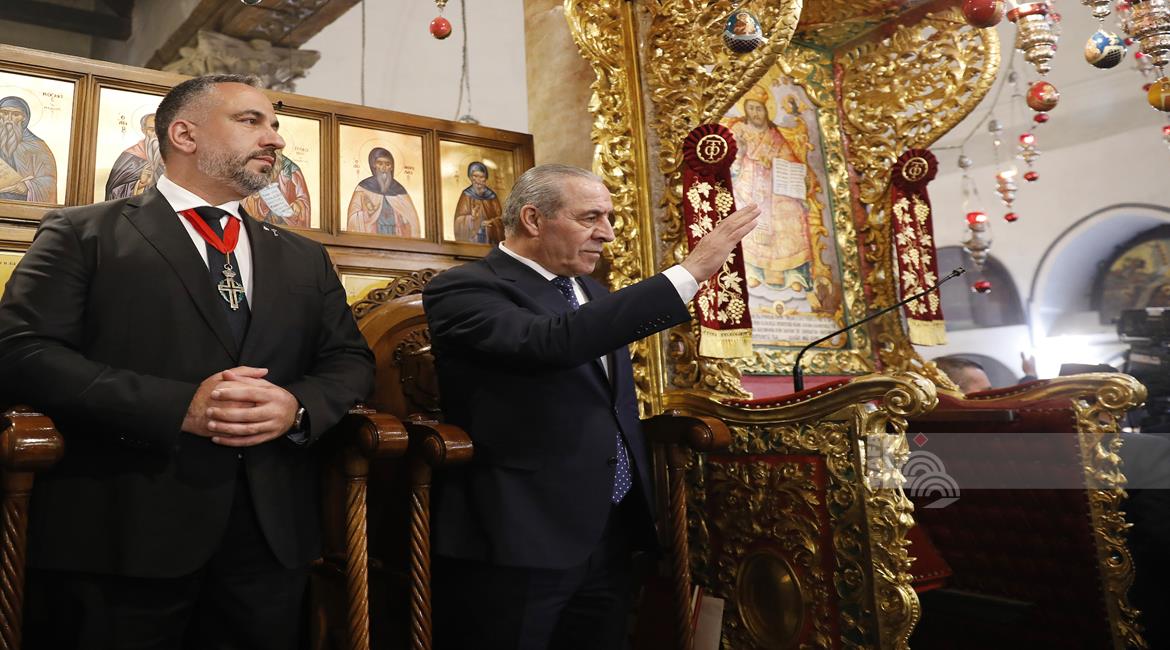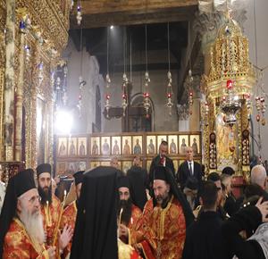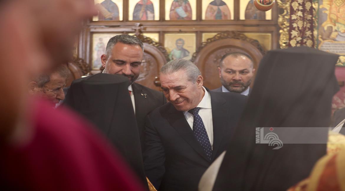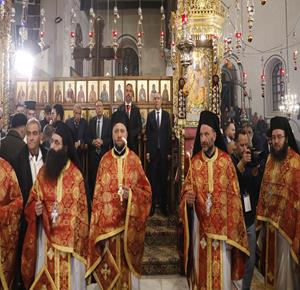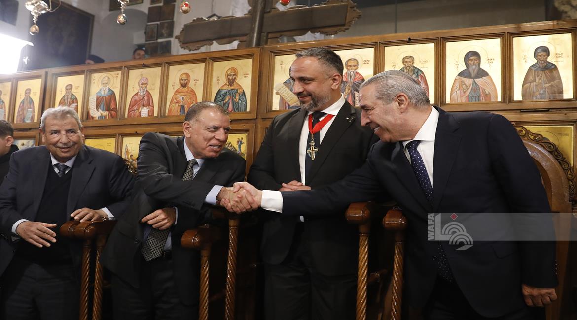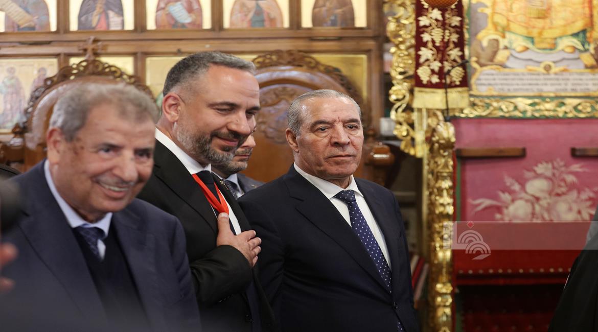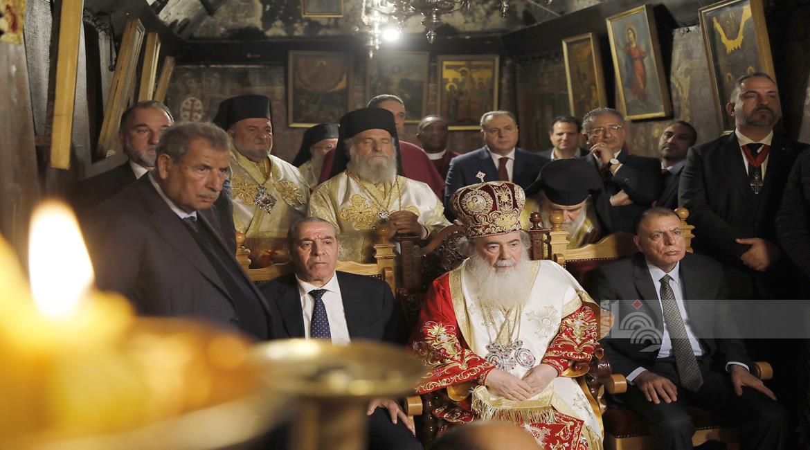 بيت لحم - ممثلا عن رئيس دولة فلسطين محمود عباس، نائب الرئيس حسين الشيخ يحضر قداس منتصف الليل بمناسبة عيد الميلاد المجيد للكنائس المسيحية التي تسير وفق التقويم الشرقي.