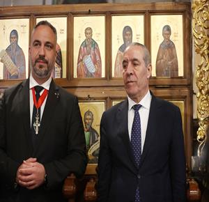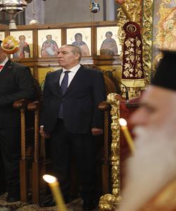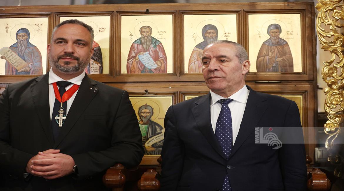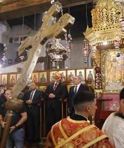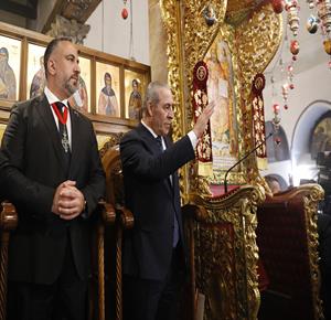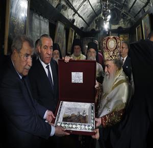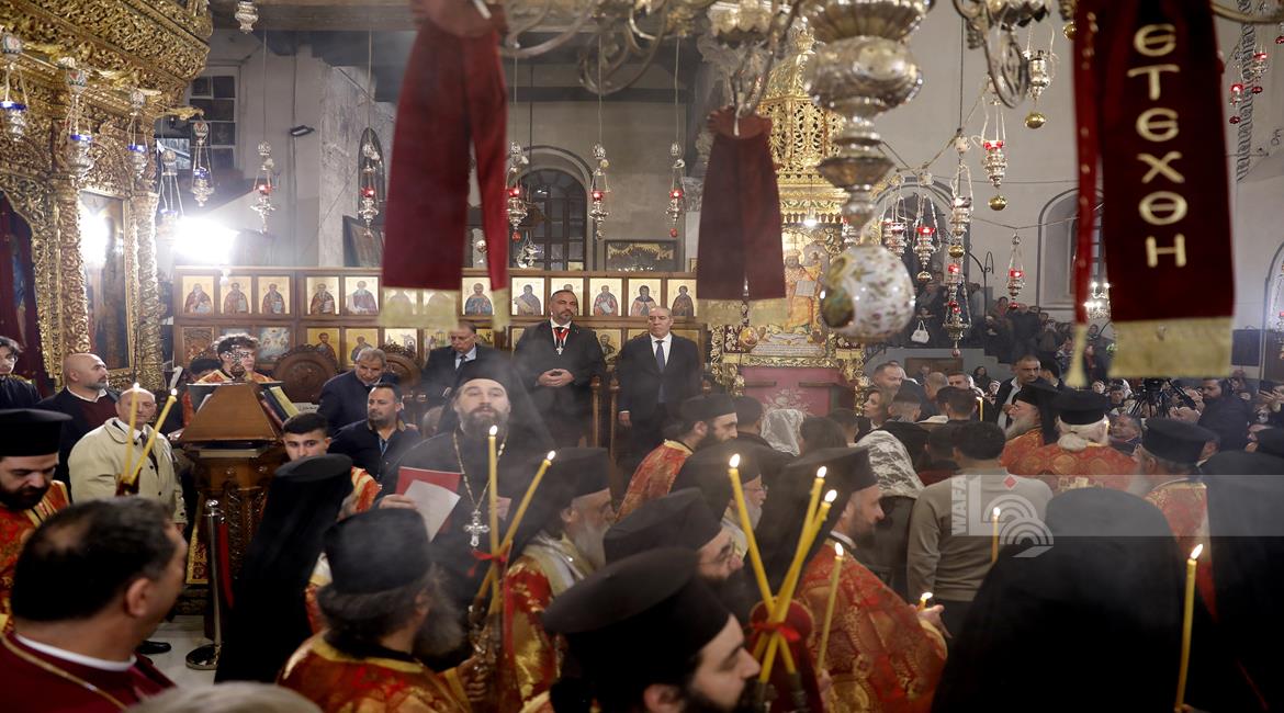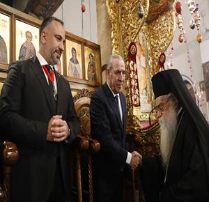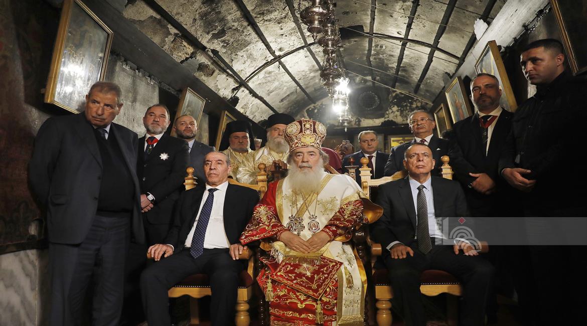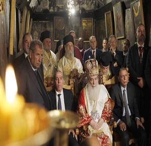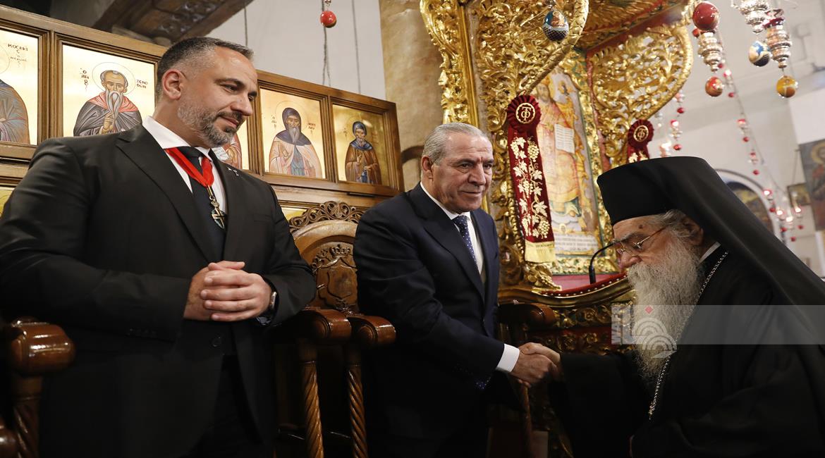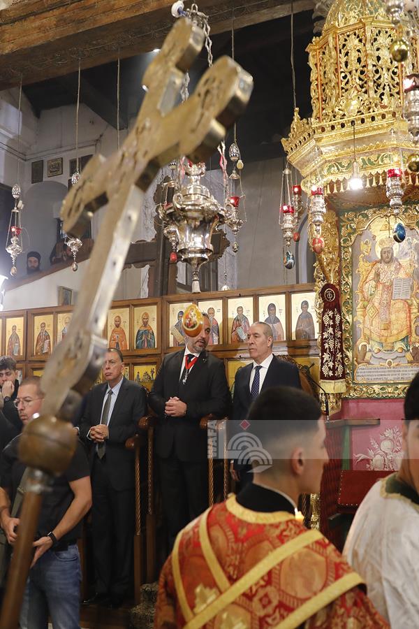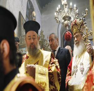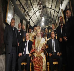 بيت لحم - ممثلا عن رئيس دولة فلسطين محمود عباس، نائب الرئيس حسين الشيخ يحضر قداس منتصف الليل بمناسبة عيد الميلاد المجيد للكنائس المسيحية التي تسير وفق التقويم الشرقي.