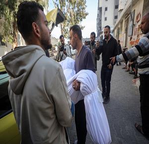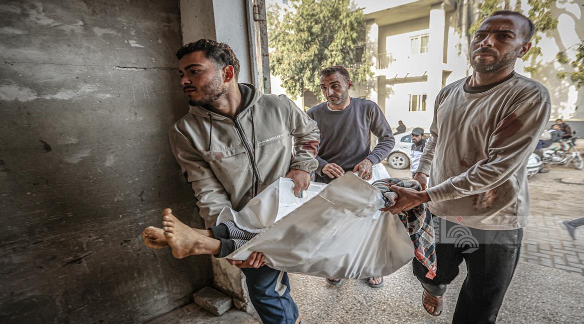وصول أربعة شهداء بينهم طفلان، إلى مستشفى ناصر جرّاء استهداف طائرات الجيش الإسرائيلي خيمةً تؤوي نازحين شمال مدينة خان يونس جنوب قطاع غزة