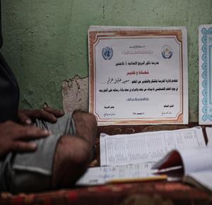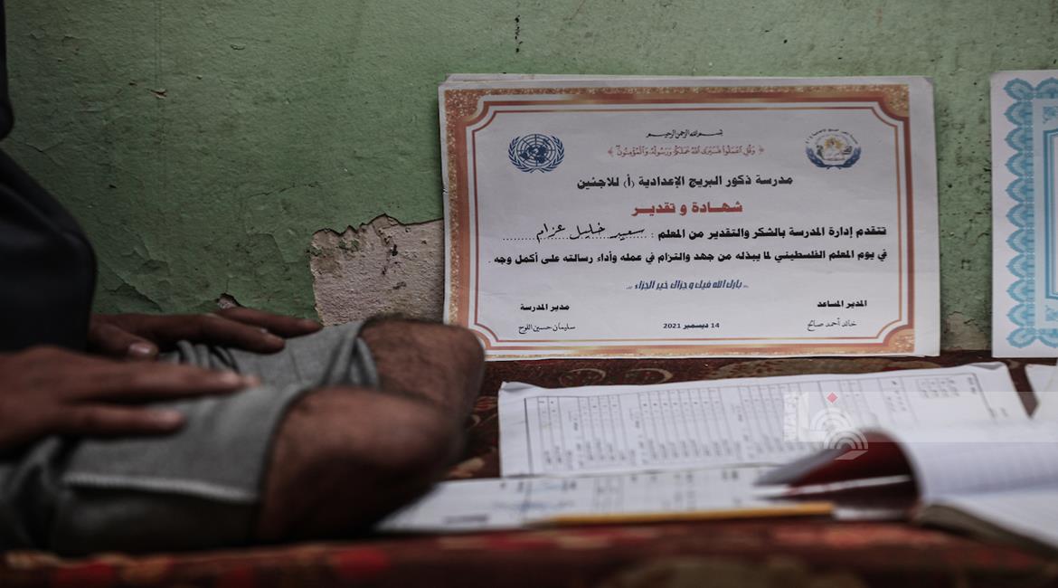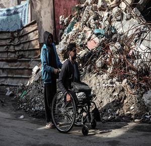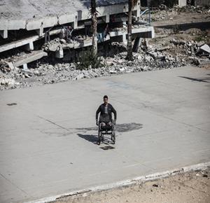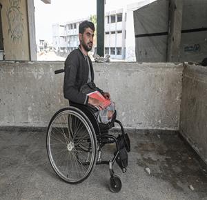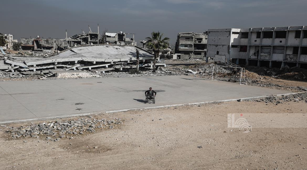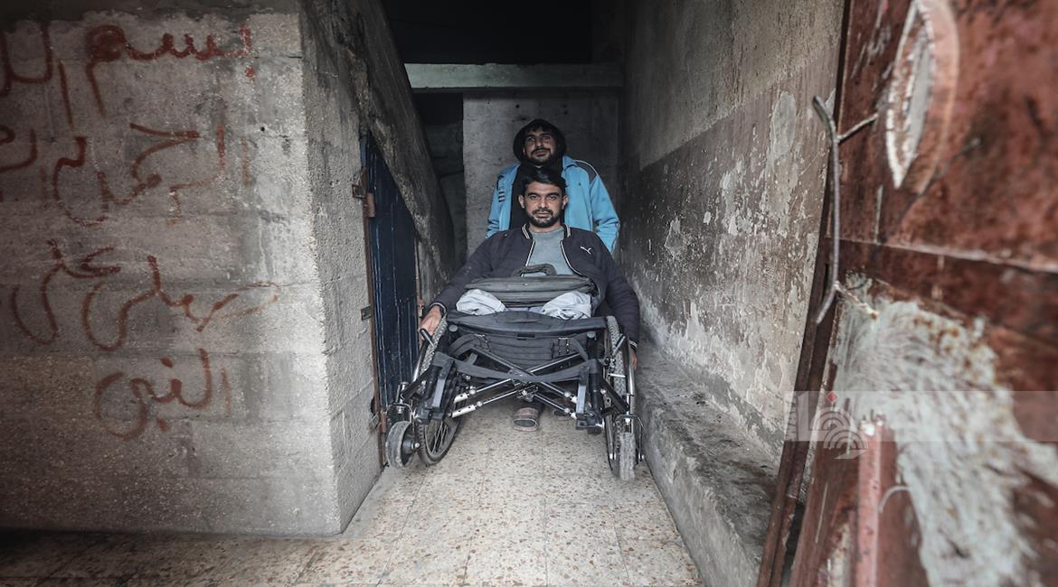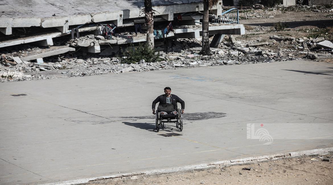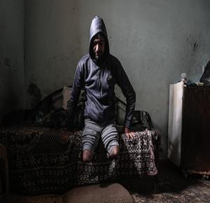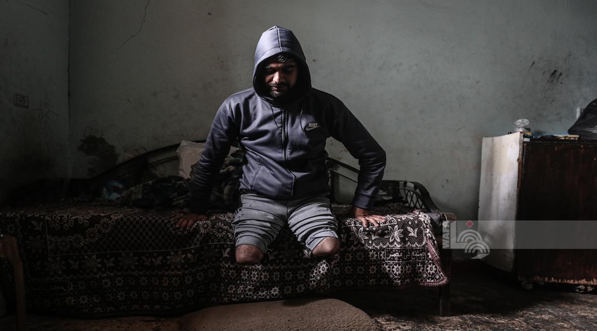 غزة - المعلّم سعيد خليل عزم (33 عامًا) أُصيب بجروح بالغة أدّت إلى بتر قدميه، جراء قصف إسرائيلي خلال الحرب على غزة، في مخيم البريج وسط قطاع غزة