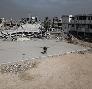 نازحون يعيشون في خيامٍ مهترئة وسط الأنقاض التي خلّفها الإحتلال الإسرائيلي بمدينة غزة