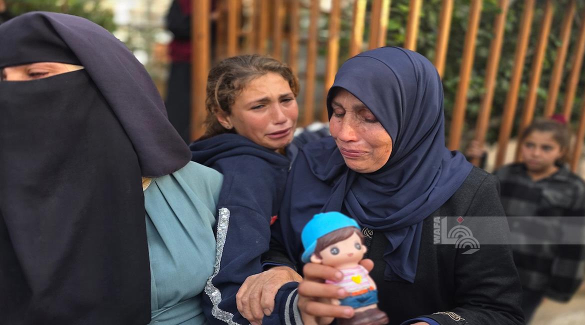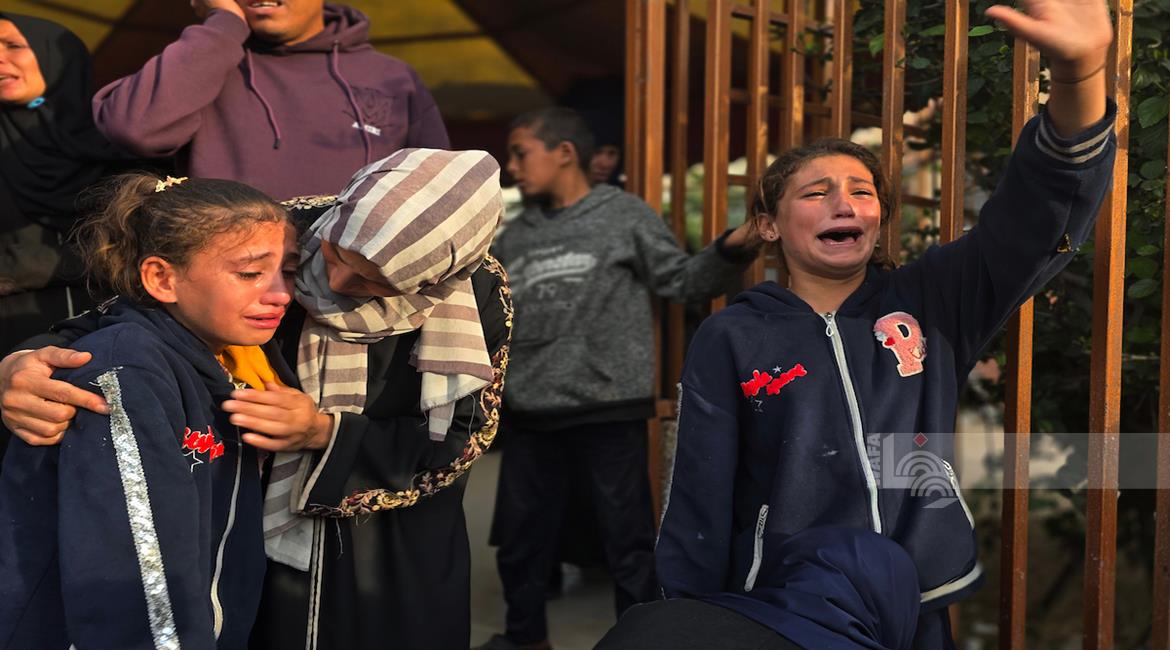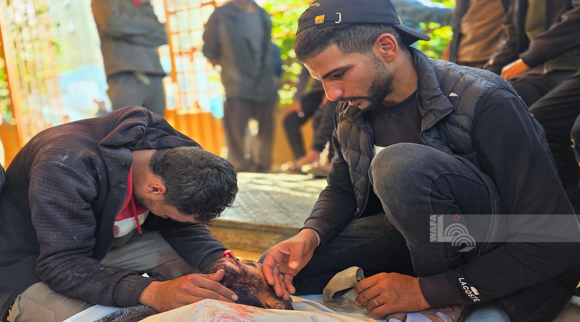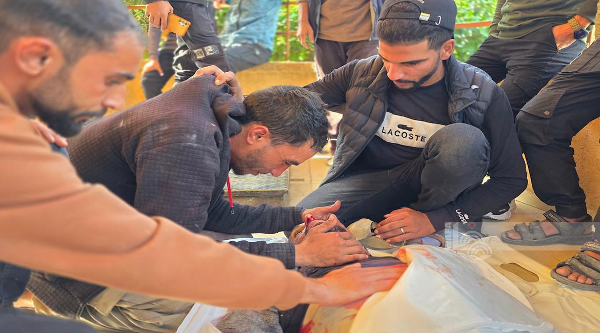 وصول شهيدين، أحدهما طفلة، إلى مستشفى ناصر الطبي بعد أن ارتقوا في قصف إسرائيلي طال خيمة تُؤوي نازحين في منطقة المواصي غرب خان يونس