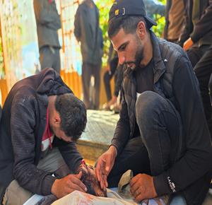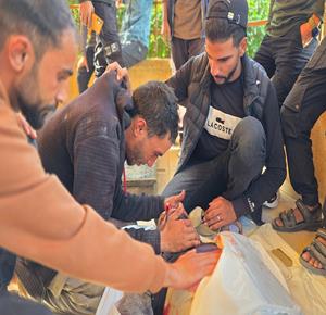 وداع وتشييع جثمان الشهيد عبد الرحمن الكاهن، 32 عاماً، في مستشفى ناصر بخان يونس