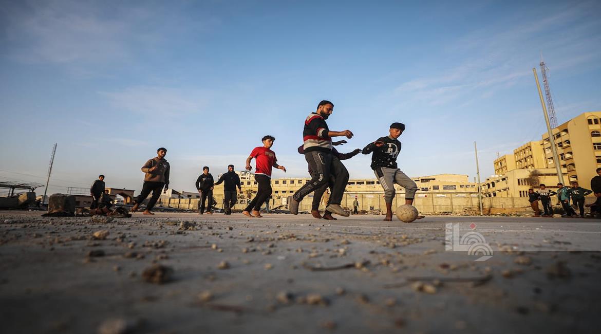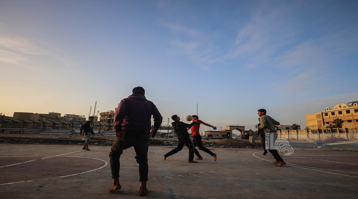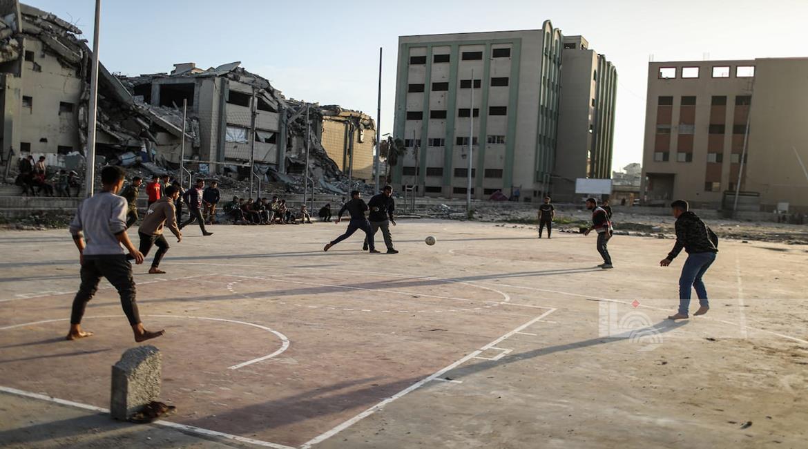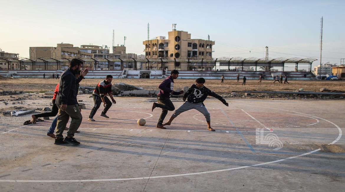- شبان نازحون يلعبون كرة القدم في ملعب مدمر بغزة