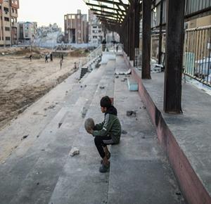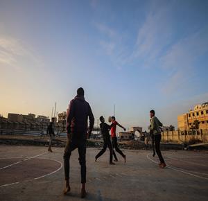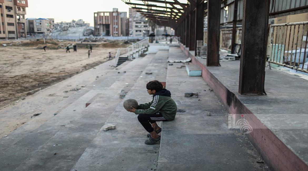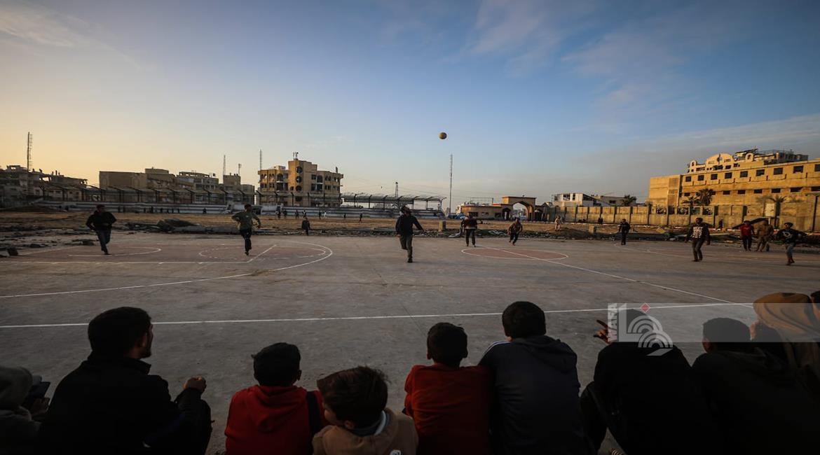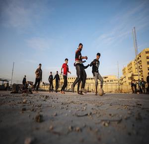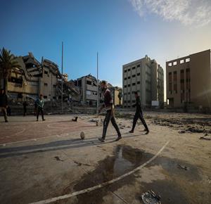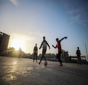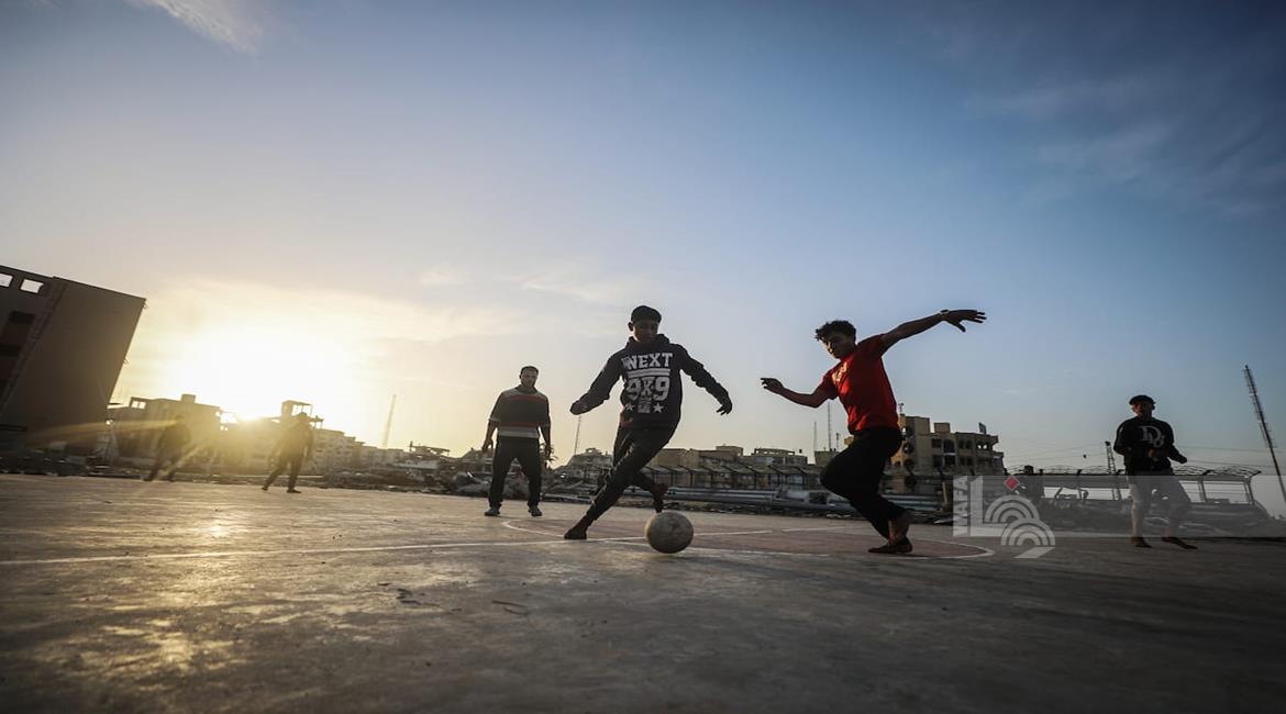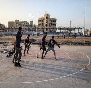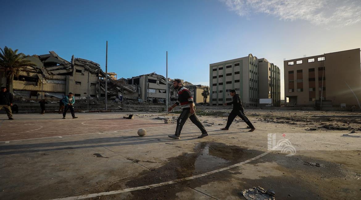 - شبان نازحون يلعبون كرة القدم في ملعب مدمر بغزة