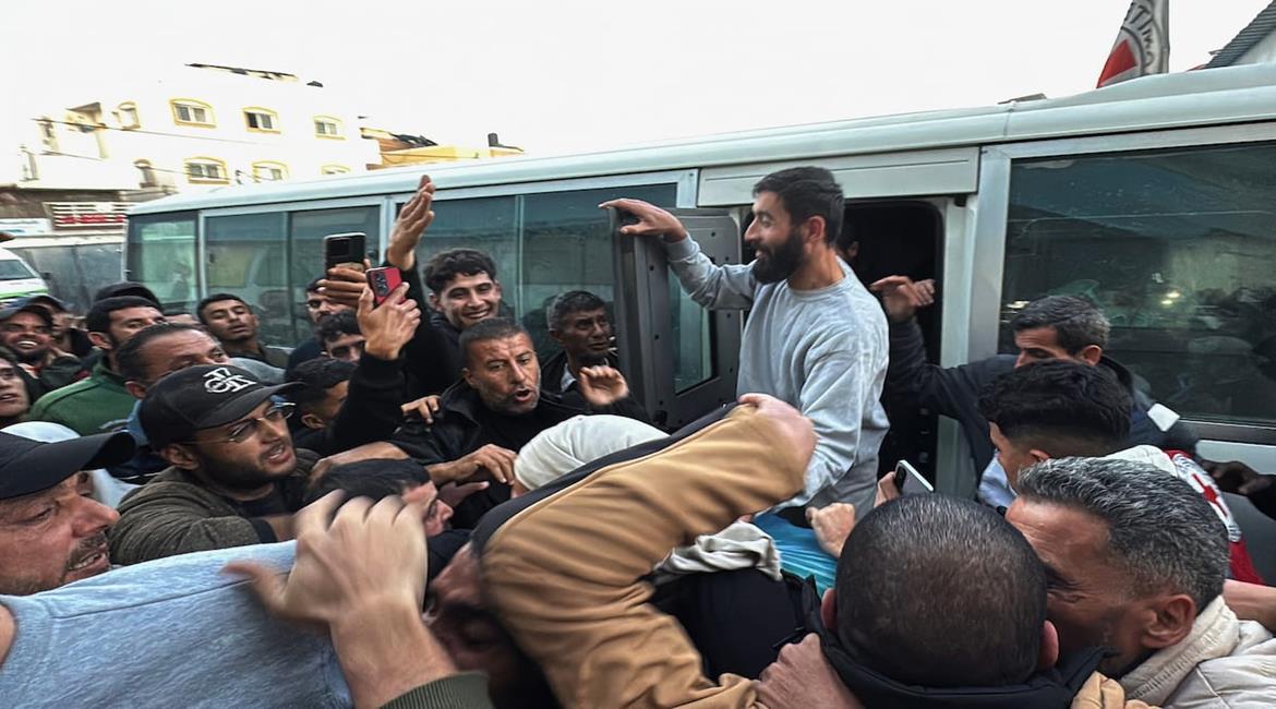 الصليب الأحمر ينقل 12 أسيرا بينهم امرأة إلى مستشفى شهداء الأقصى في دير البلح بعد الافراج عنهم من سجون الاحتلال