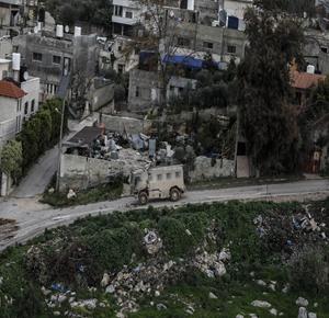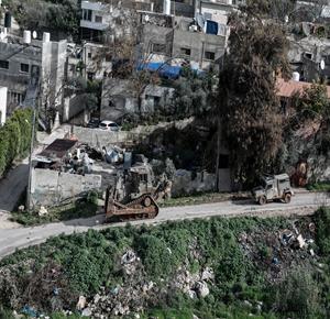 قوات الاحتلال تهدم منزل المواطن حسام قدح في بلدة شقبا غرب رام الله