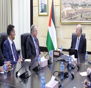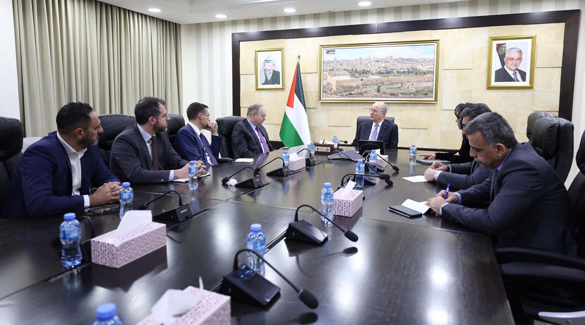 غزة - رئيس الوزراء محمد مصطفى خلال لقائه مع مدير مركز الاستجابة للأزمات في جهاز العمل الخارجي الأوروبي كريستيان بيرغر