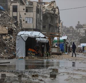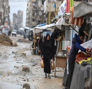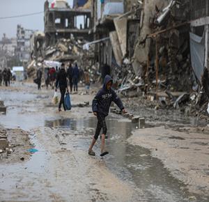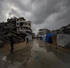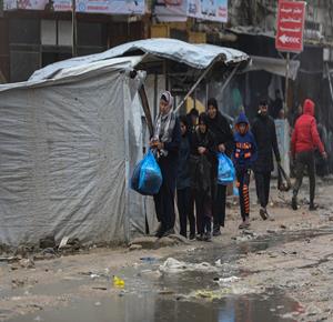 غزة - نازحون يكافحون لمواصلة حياتهم اليومية وسط الأنقاض التي خلّفتها الهجمات الإسرائيلية على غزة في ظلّ المنخفض الجوي والبرد القارس