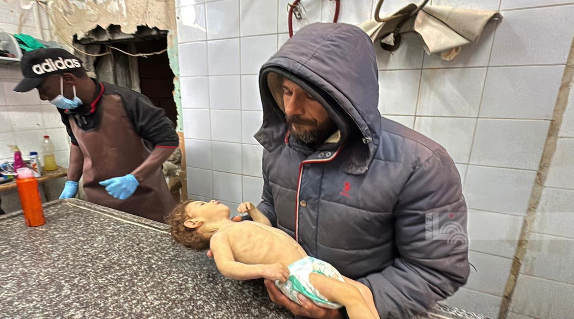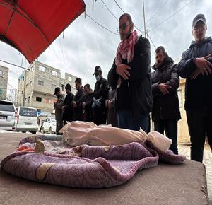 غزة - تشييع الطفل محمد بسيوني( عاما واحد) نتيجة البرد القارس في دير البلح