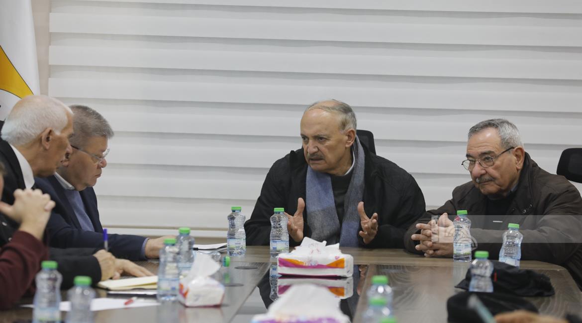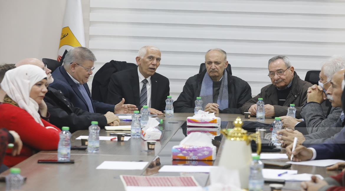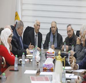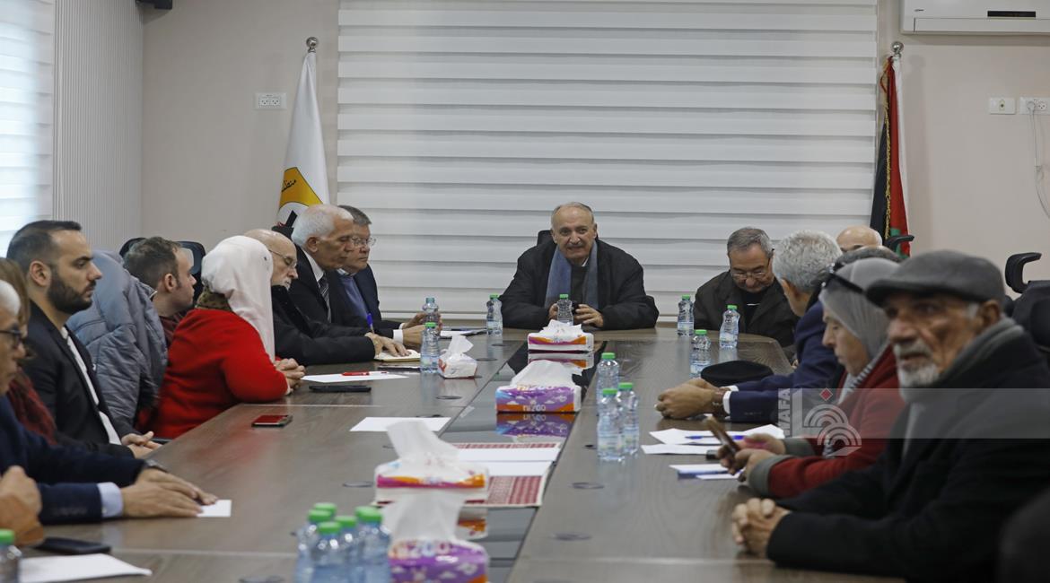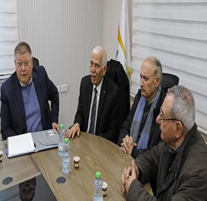 البيرة - رئيس اتحاد النقابات العالمي بامبيس كريتسيس (WFTU) خلال زيارته مع وفد مرافق له لمقر منظمة التحرير