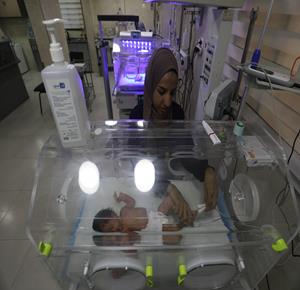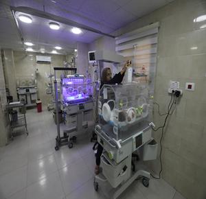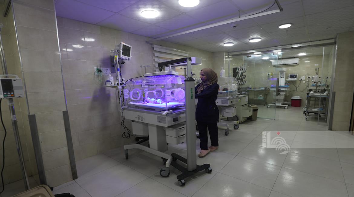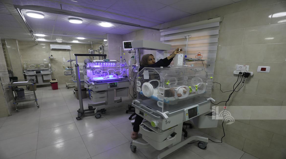 غزة - أطفال خدج يتلقون الرعاية في وحدة العناية المركزة لحديثي الولادة بمستشفى العودة في مخيم النصيرات، حيث يعيش الأطفال حديثو الولادة "الخدج" في ظروف صعبة نتيجةً نقص المعدات الطبية الأساسية وأنظمة التدفئة