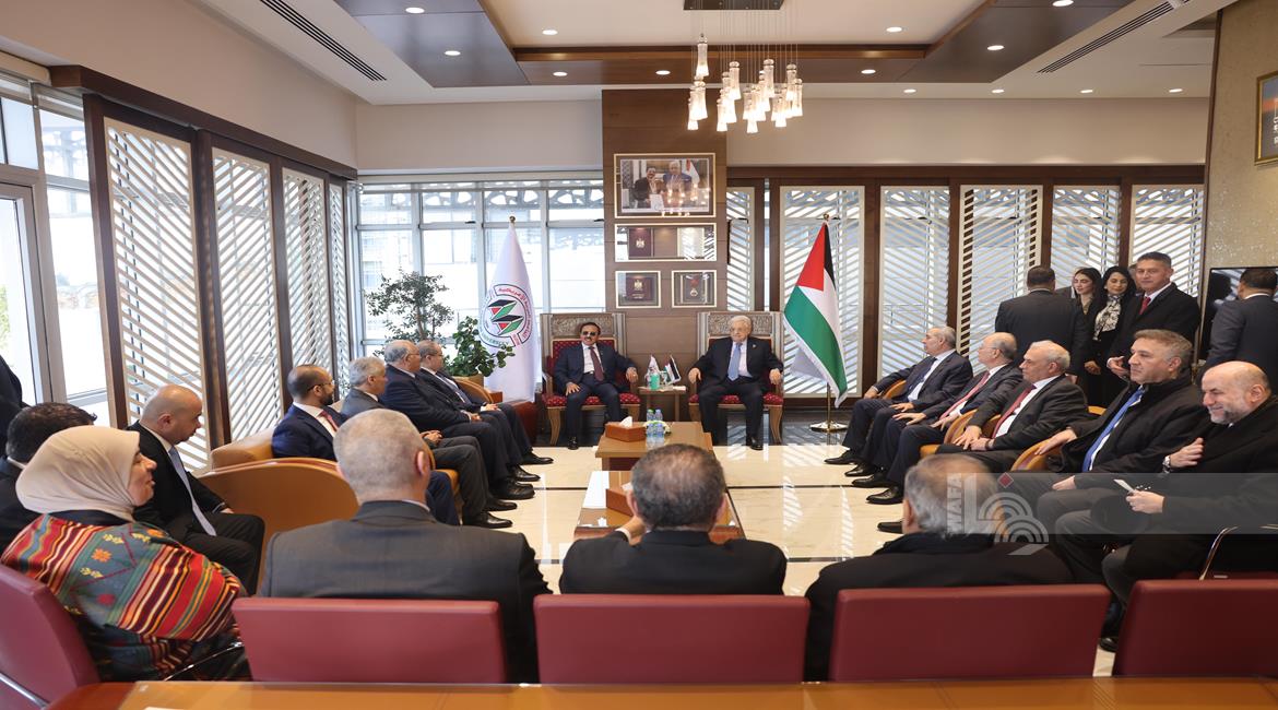 الرئيس محمود عباس أثناء استقباله للسيدة فدوى البرغوثي زوجة القائد الكبير عضو اللجنة المركزية لحركة فتح مروان البرغوثي